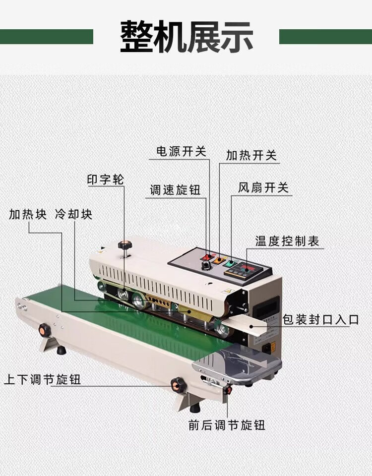 VONPACK FR900 conveyor belt sealing machine, fully automatic packaging machine, small heat sealing machine, plastic film, aluminum foil bag, food and tea sealing machine