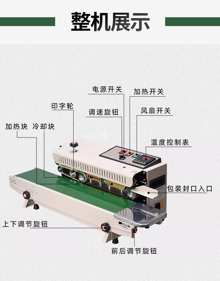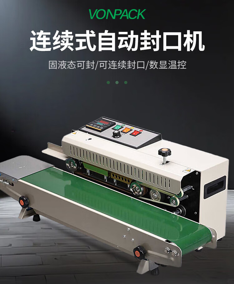VONPACK sealing machine, fully automatic conveyor belt to print production date, small plastic film, aluminum foil bag, food and tea, FR-900 standard model