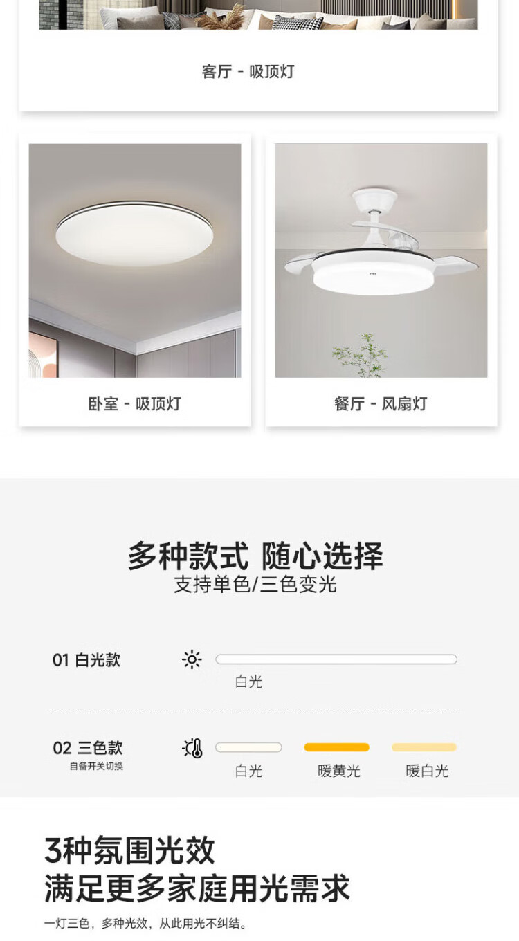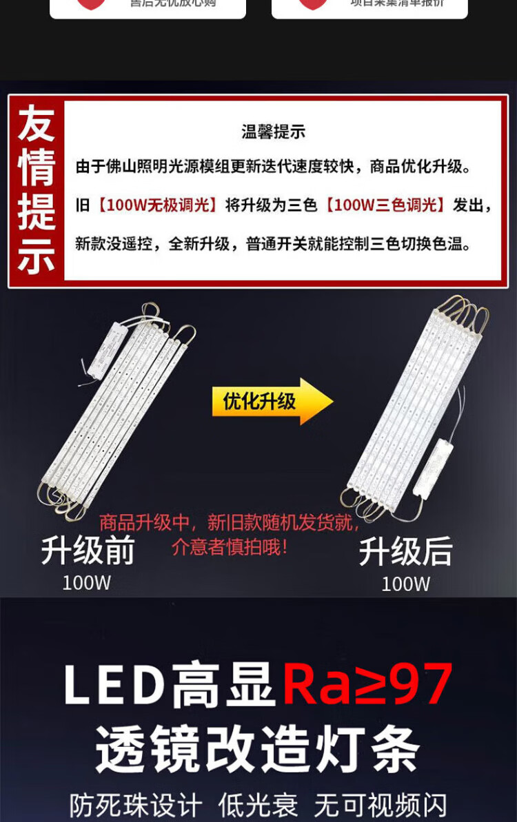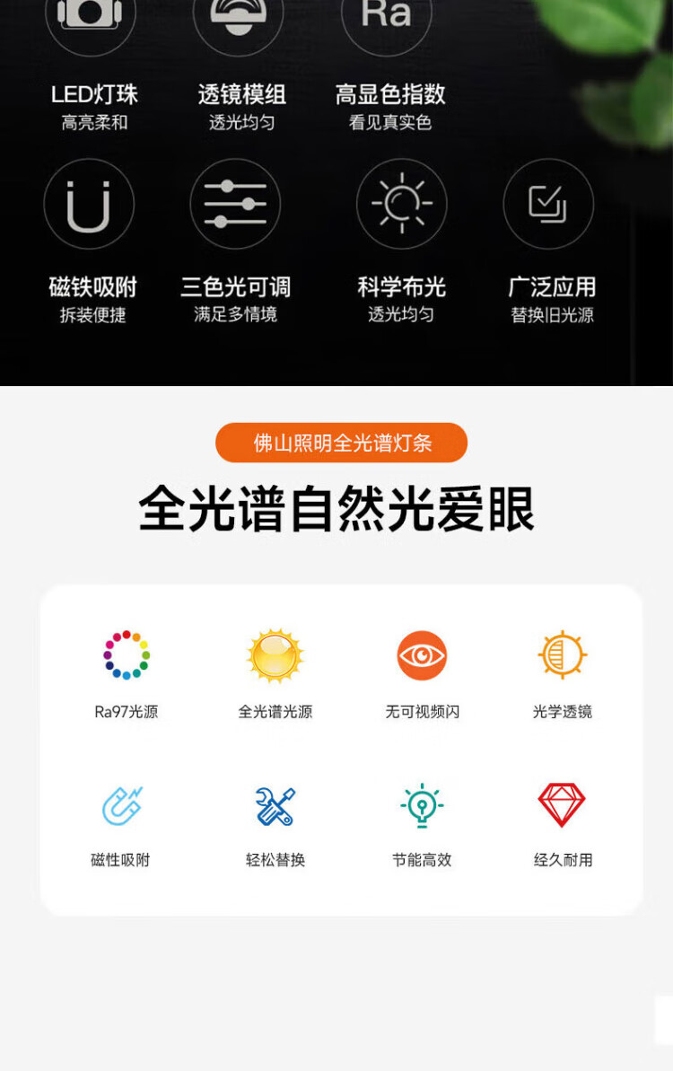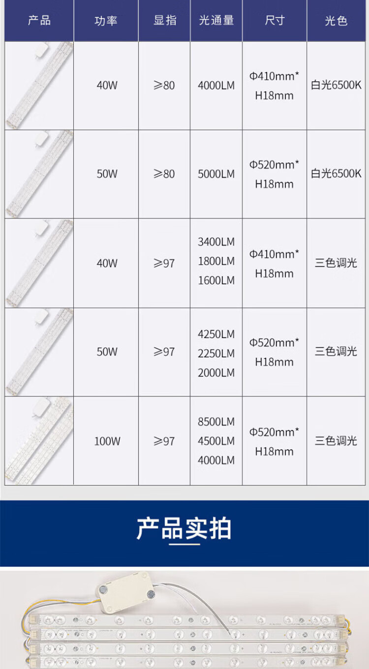 Foshan Lighting (FSL) full spectrum LED ceiling lamp one for four 50W replacement wick Ra97 high color rendering magnetic light source module three-level color adjustment 520mm including binding posts