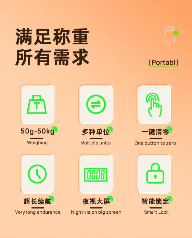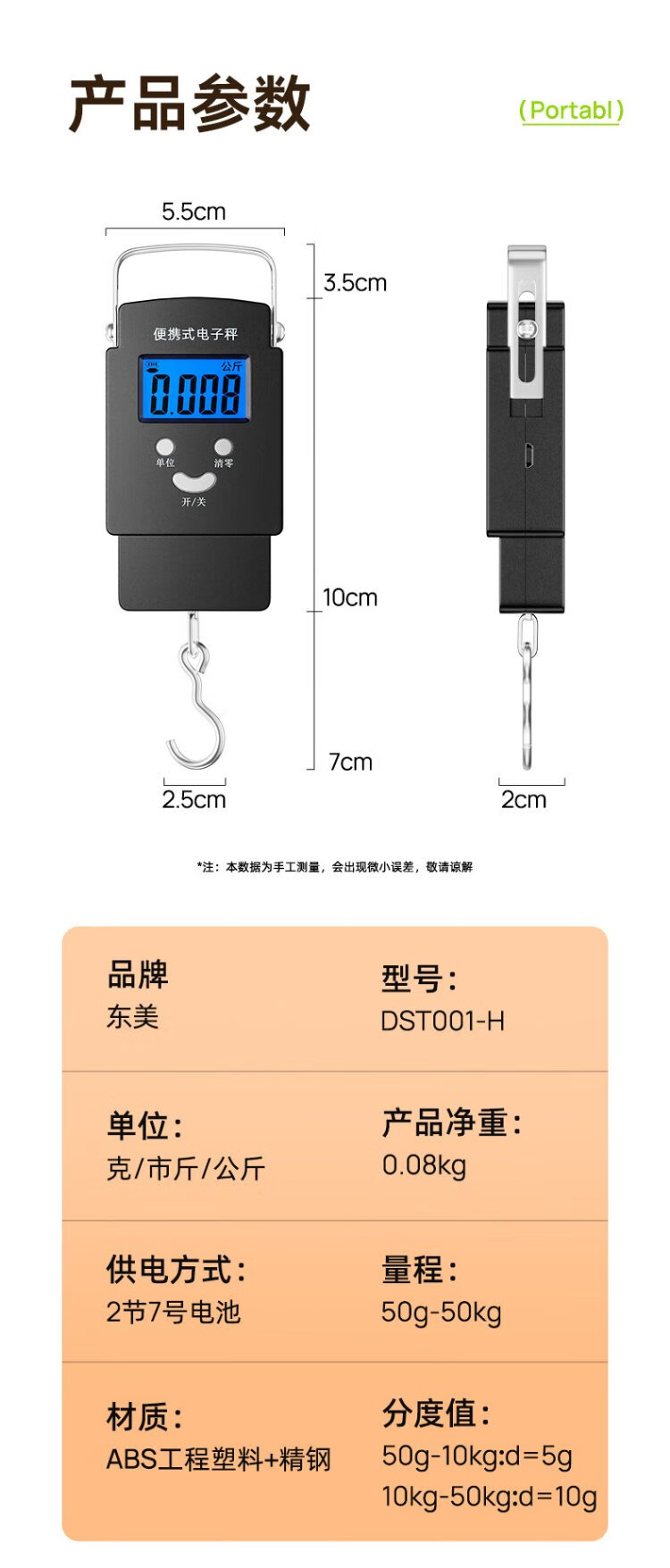 Dongmei portable scale, electronic scale, portable scale, mini spring scale, kitchen scale, weighing scale, high-precision luggage scale, express weighing scale