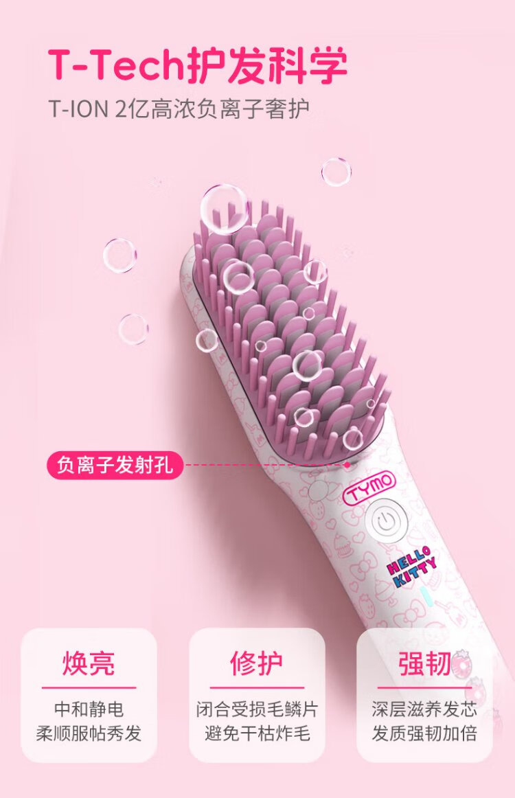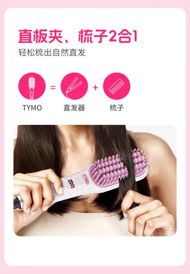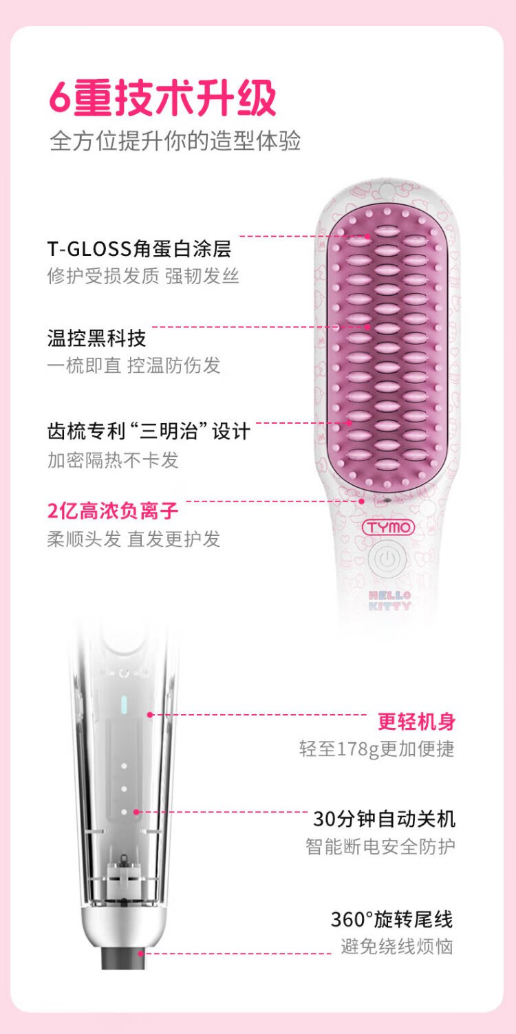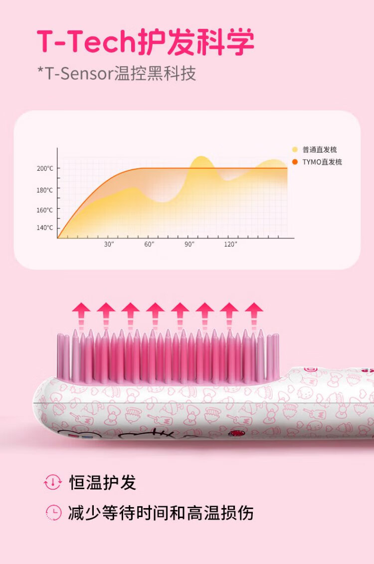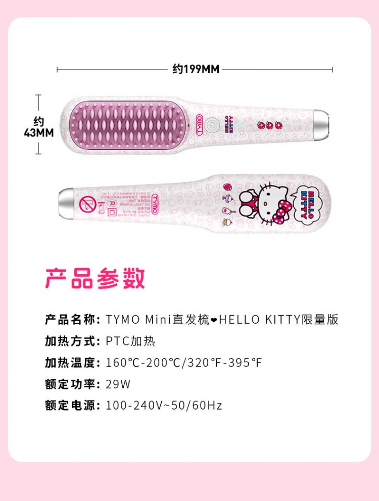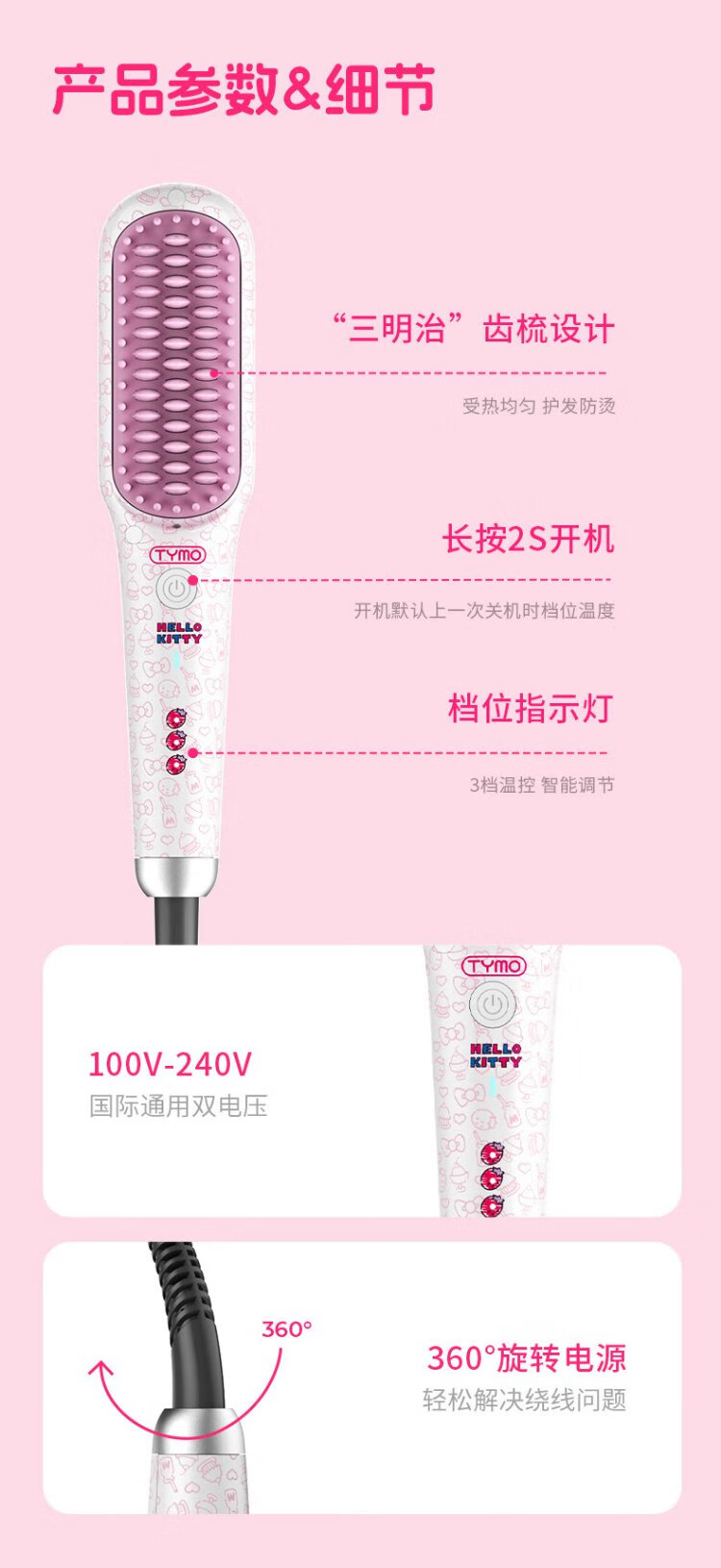 TYMO hair straightening comb 200 million negative ions straight clip protects hair without damaging the hair and smoothes the top of the skull to improve frizz Hello Kitty style Mini straightening comb