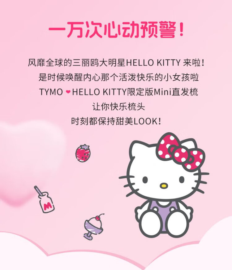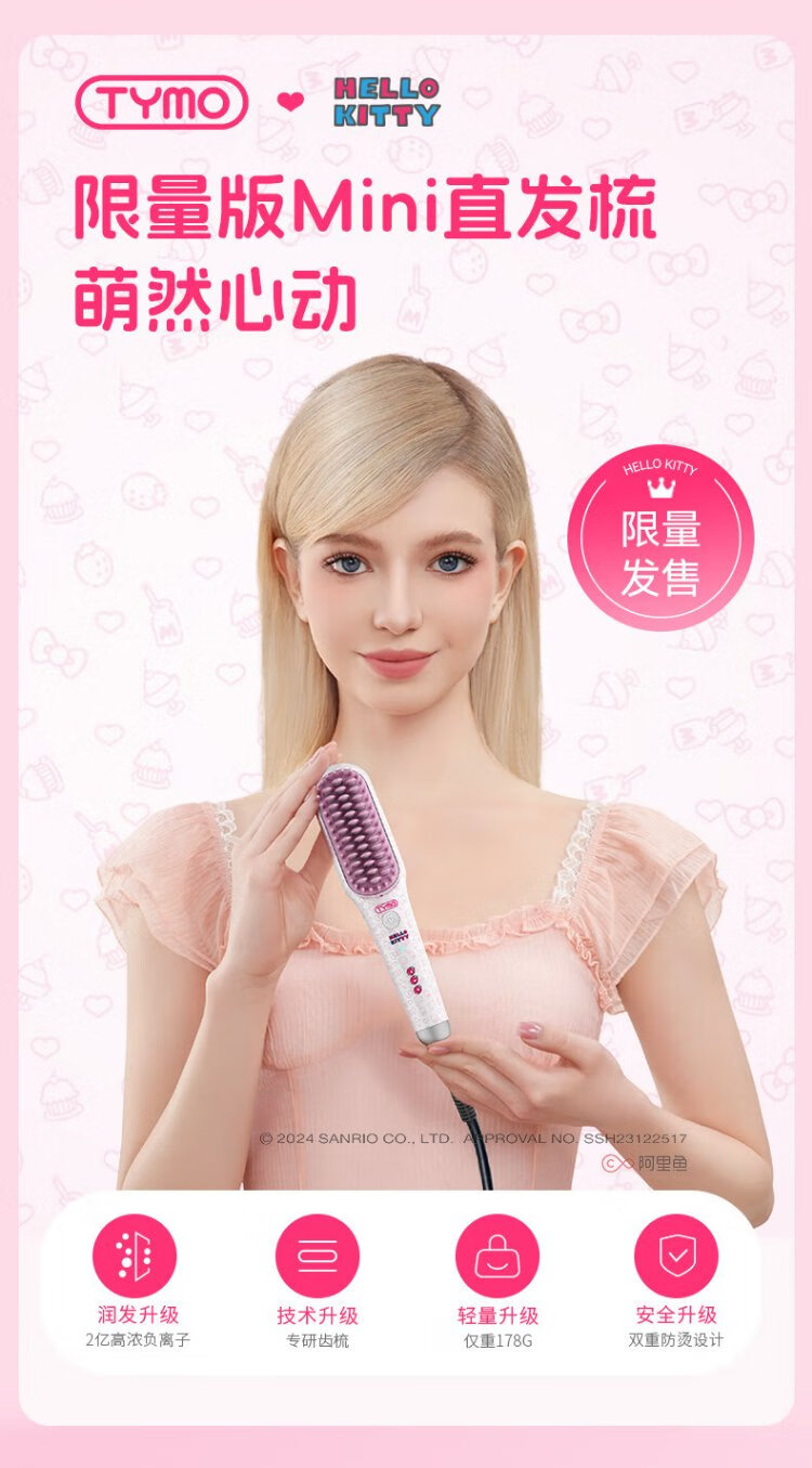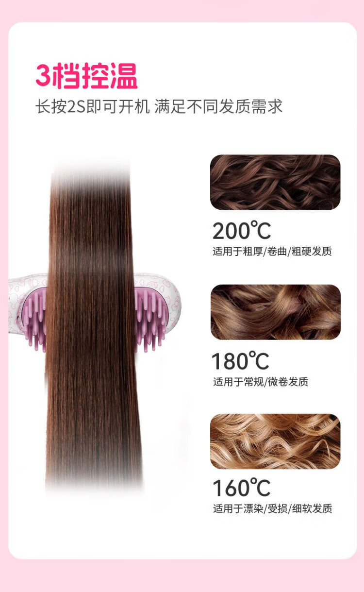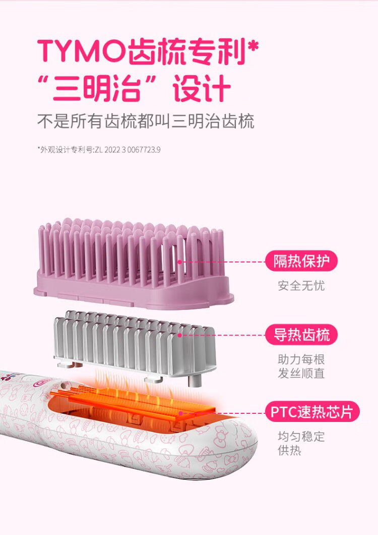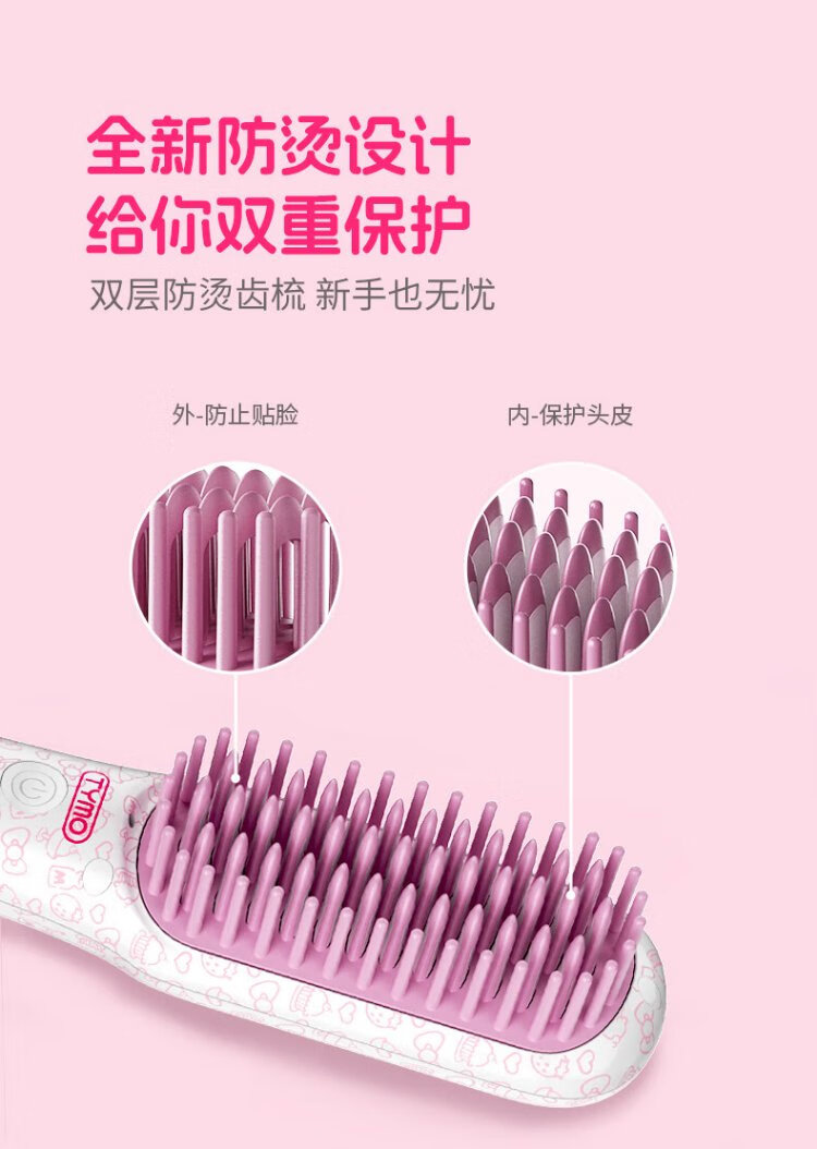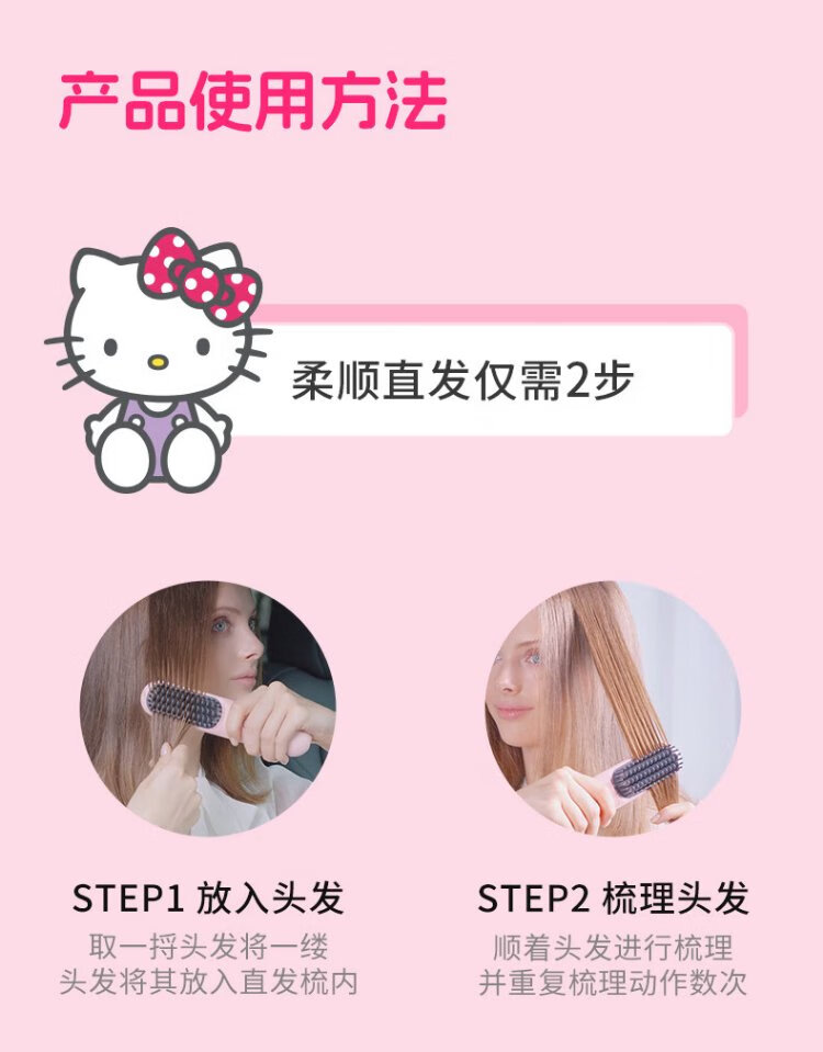 TYMO hair straightening comb 200 million negative ions straight clip protects hair without damaging the hair and smoothes the top of the skull to improve frizz Hello Kitty style Mini straightening comb