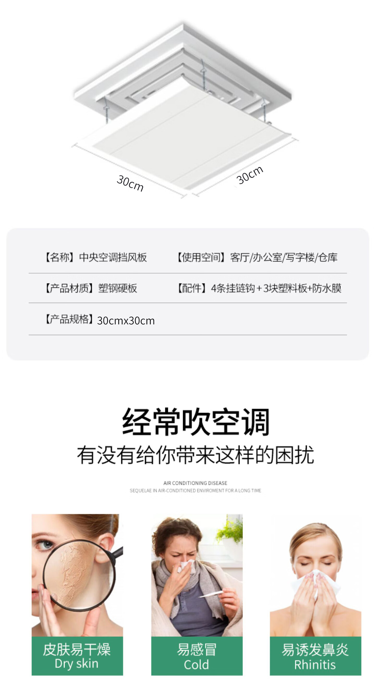 Jinying central air conditioning windshield office duct ceiling machine square air outlet wind guide plate anti-direct blowing cover wind guide shield 30*30CM chain clause