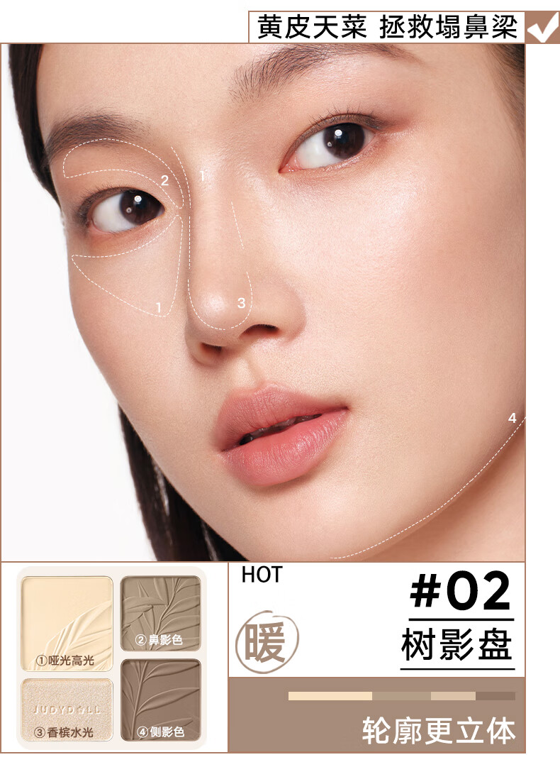 Judydoll high-gloss contouring blush combination high-gloss contouring comprehensive palette powder blush high-gloss palette rouge blush cream
