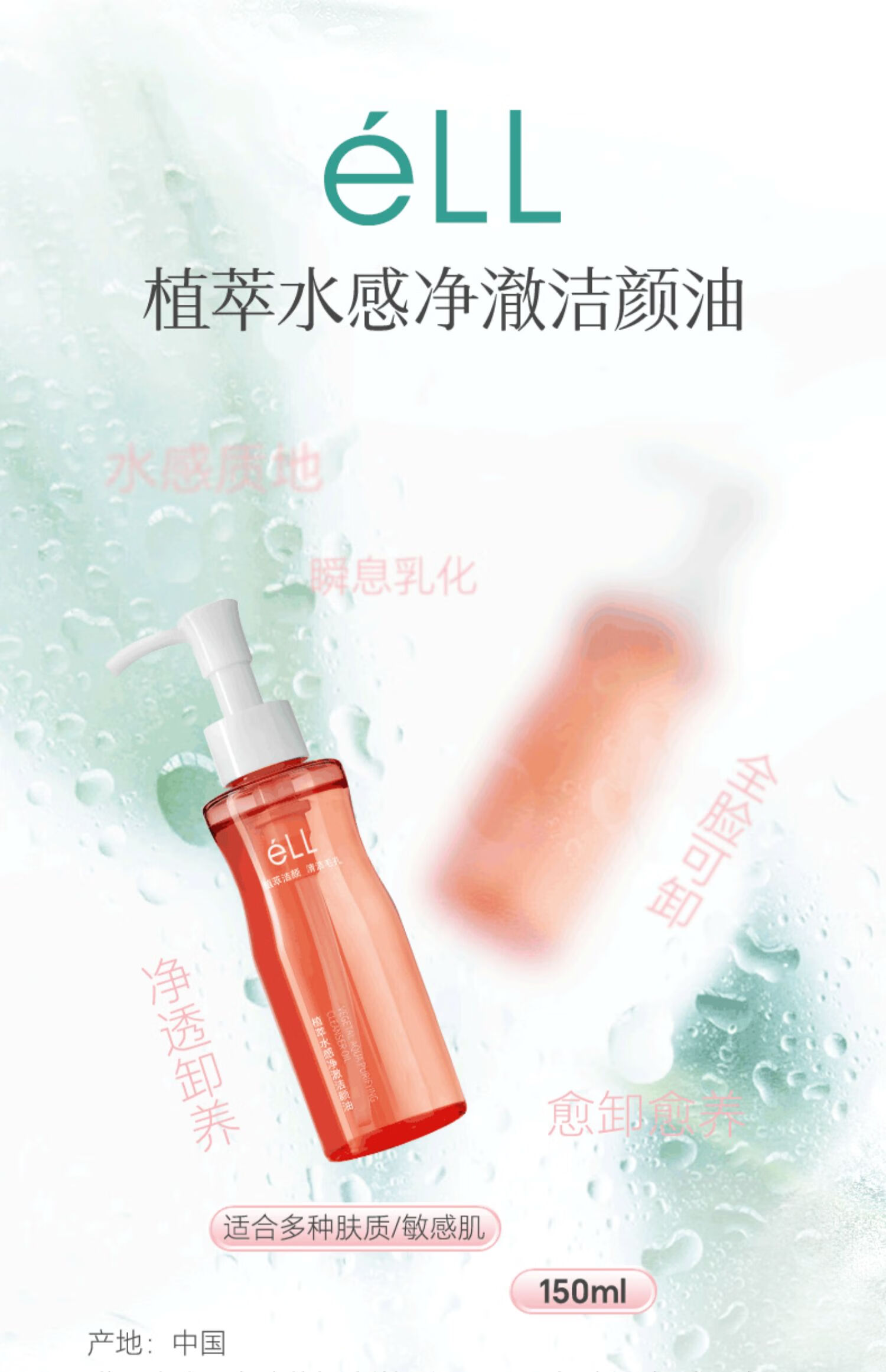 ELL Ying'er's same style small pink waist plant extract cleansing oil 150ml three-in-one sensitive skin deep cleansing oil for eyes, lips and face