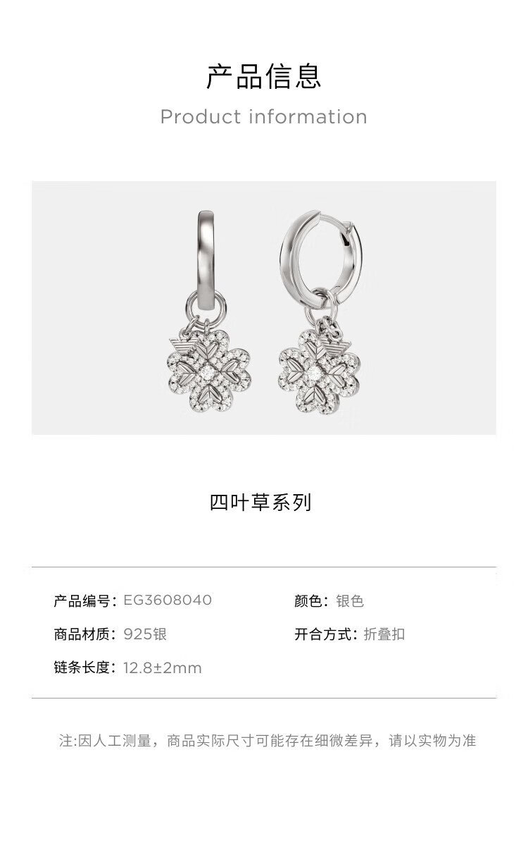 EMPORIO ARMANI Armani women's earrings lucky core silver earrings birthday gift for girlfriend EG3610221