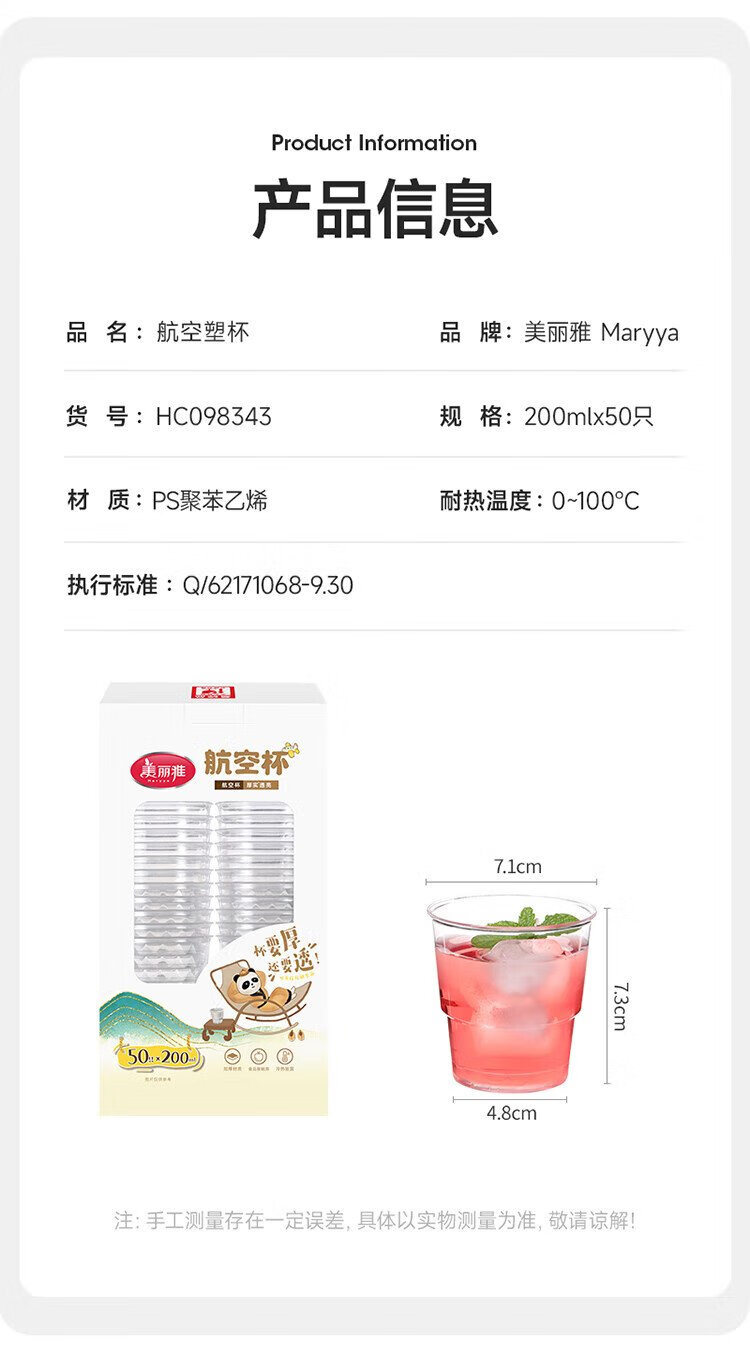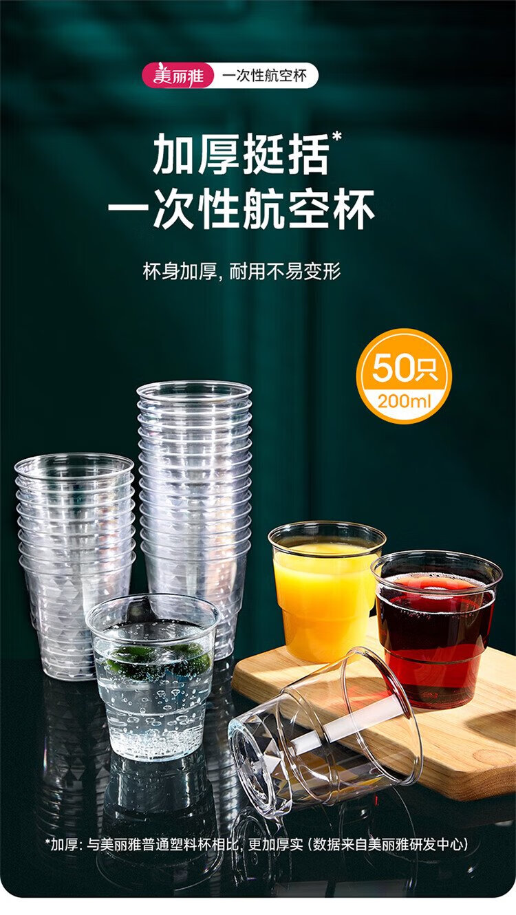 Meiya Disposable Cup Aviation Cup 200ml*50 Food Grade Thickened Plastic Cup Transparent Water Cup Beverage Cup