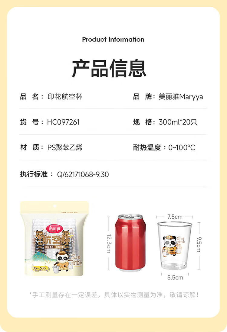 Meliya disposable cup aviation cup printed plastic cup 300ml*20 space cup large thickened drink cup tea cup