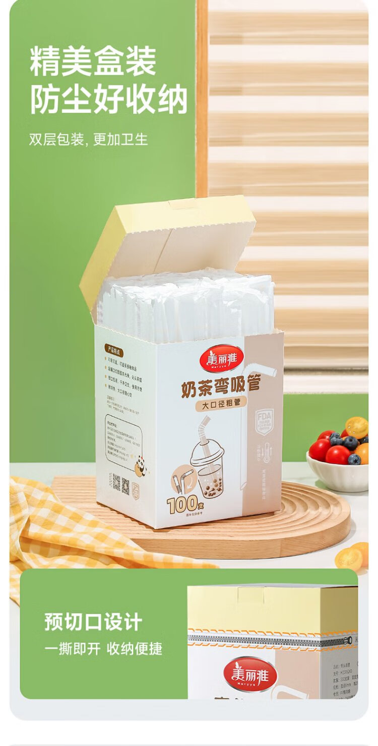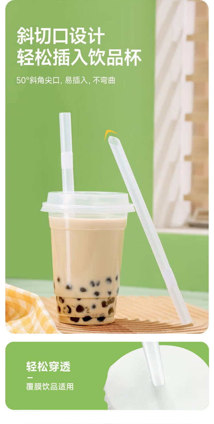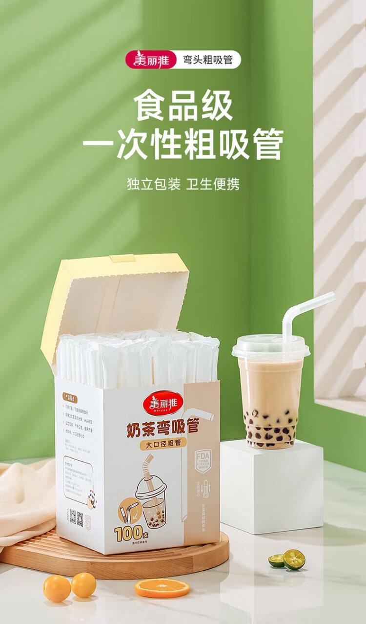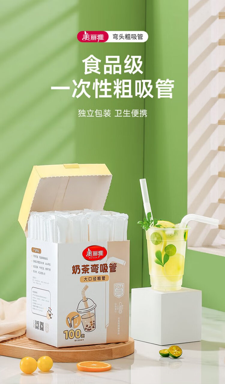 Meiya disposable straws, individually packaged, boxed, thick straws for adults and children with oblique cuts, 100 pieces