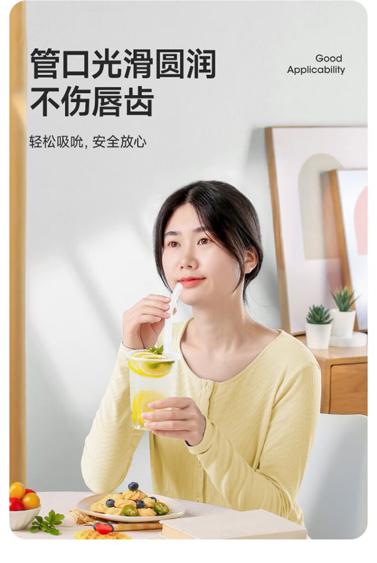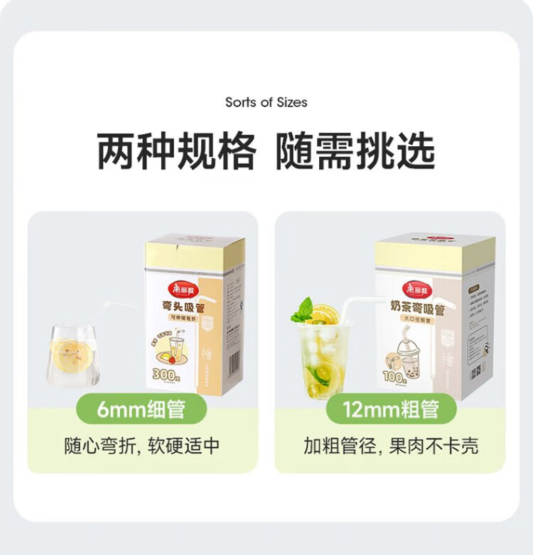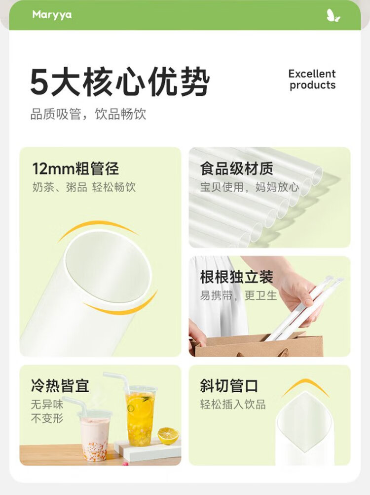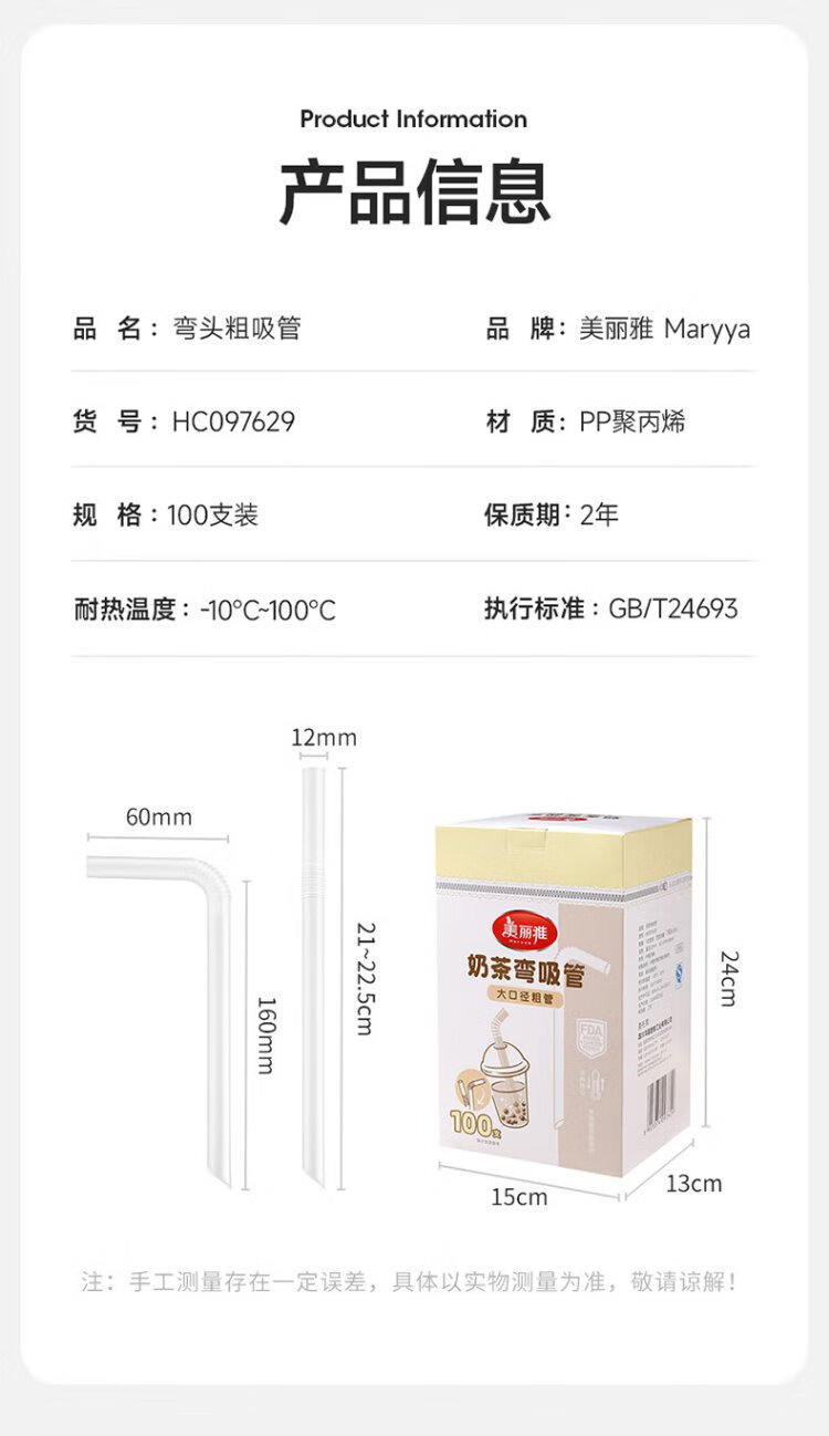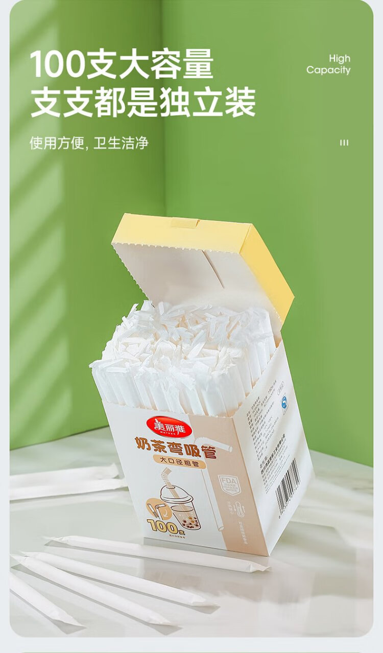 Meiya disposable straws, individually packaged, boxed, thick straws for adults and children with oblique cuts, 100 pieces
