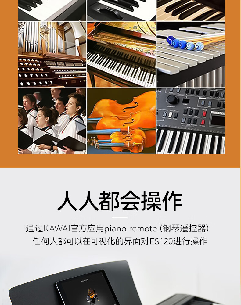 KAWAI electric piano ES120 black Kawai 88-key hammer keyboard for adults and children to perform digital electric piano + gift bag