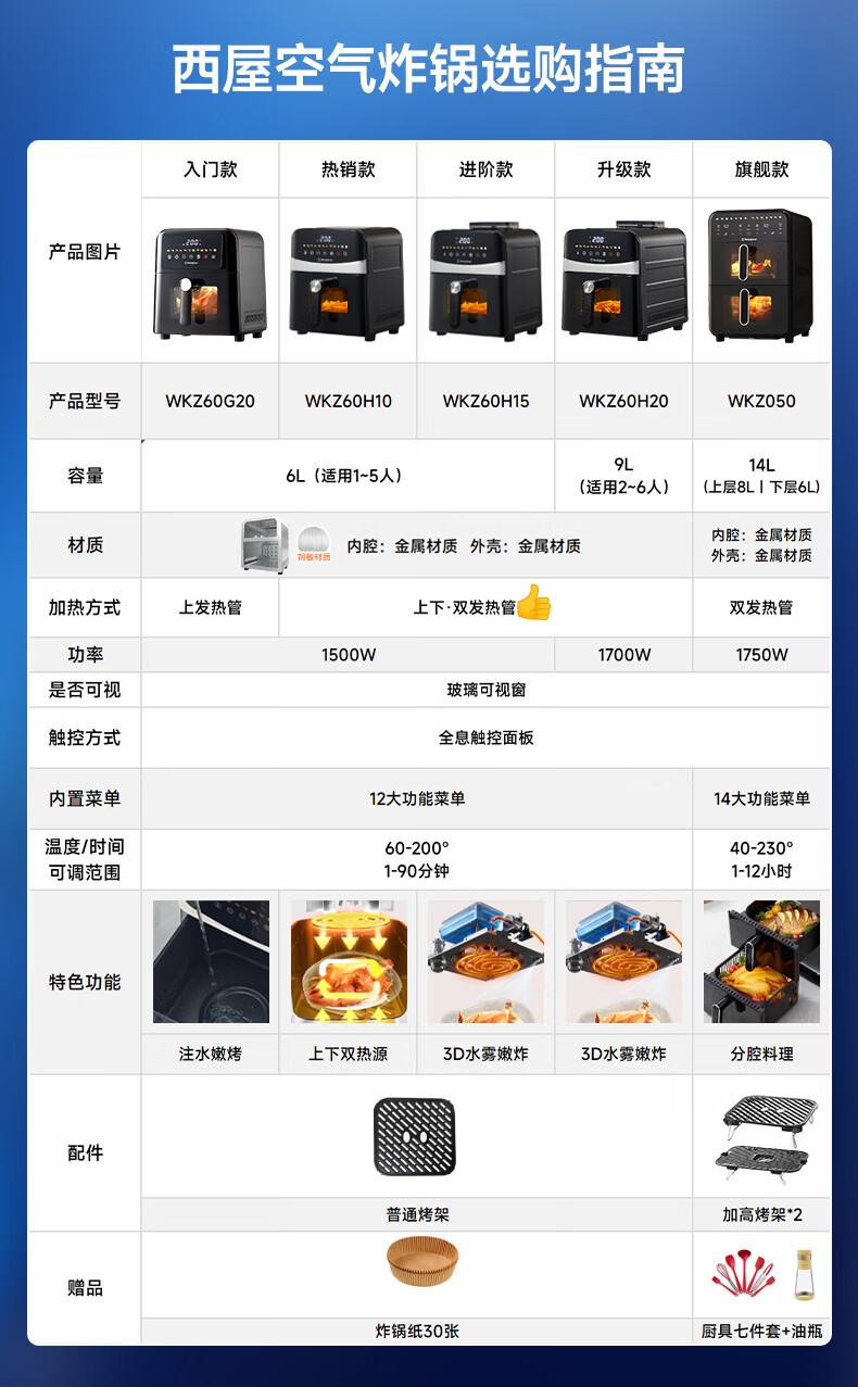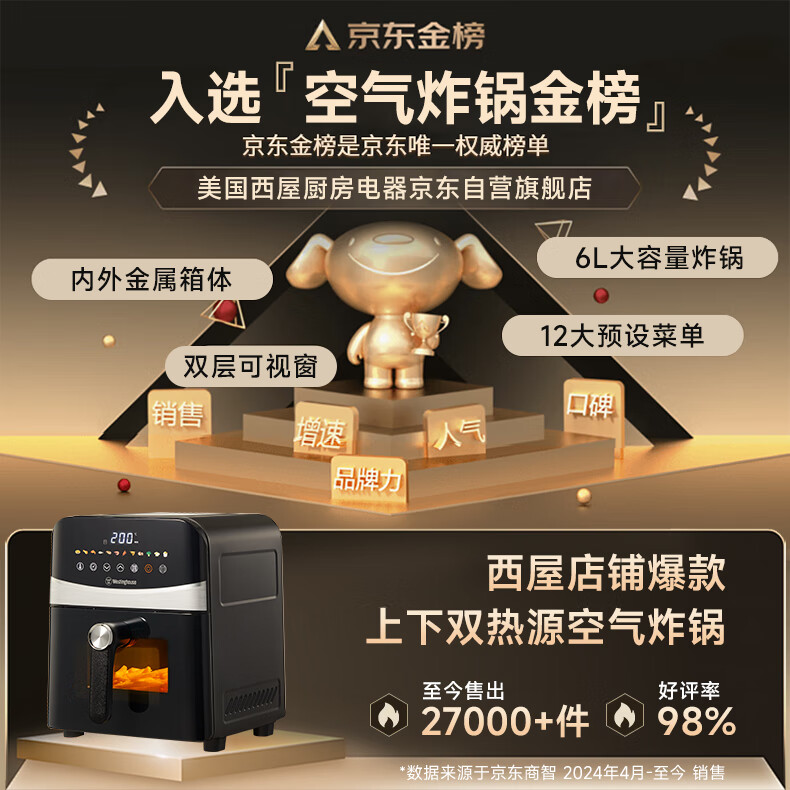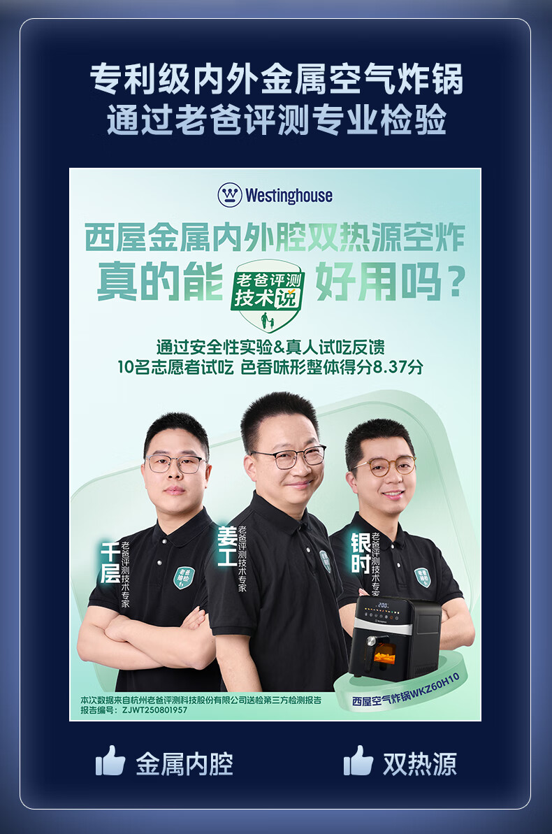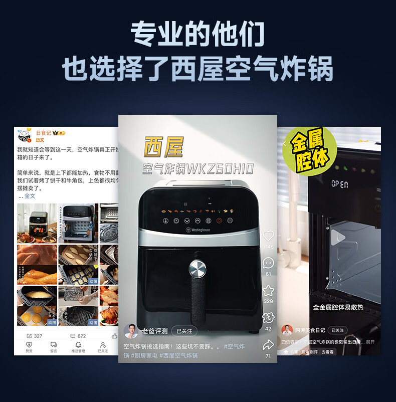 Westinghouse visual air fryer 6 liters large capacity metal inner cavity multifunctional oven flip-free fryer WKZ60H10