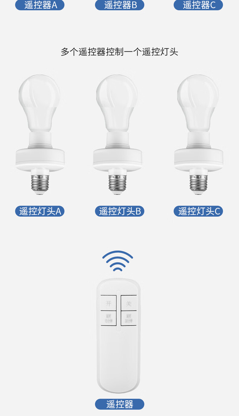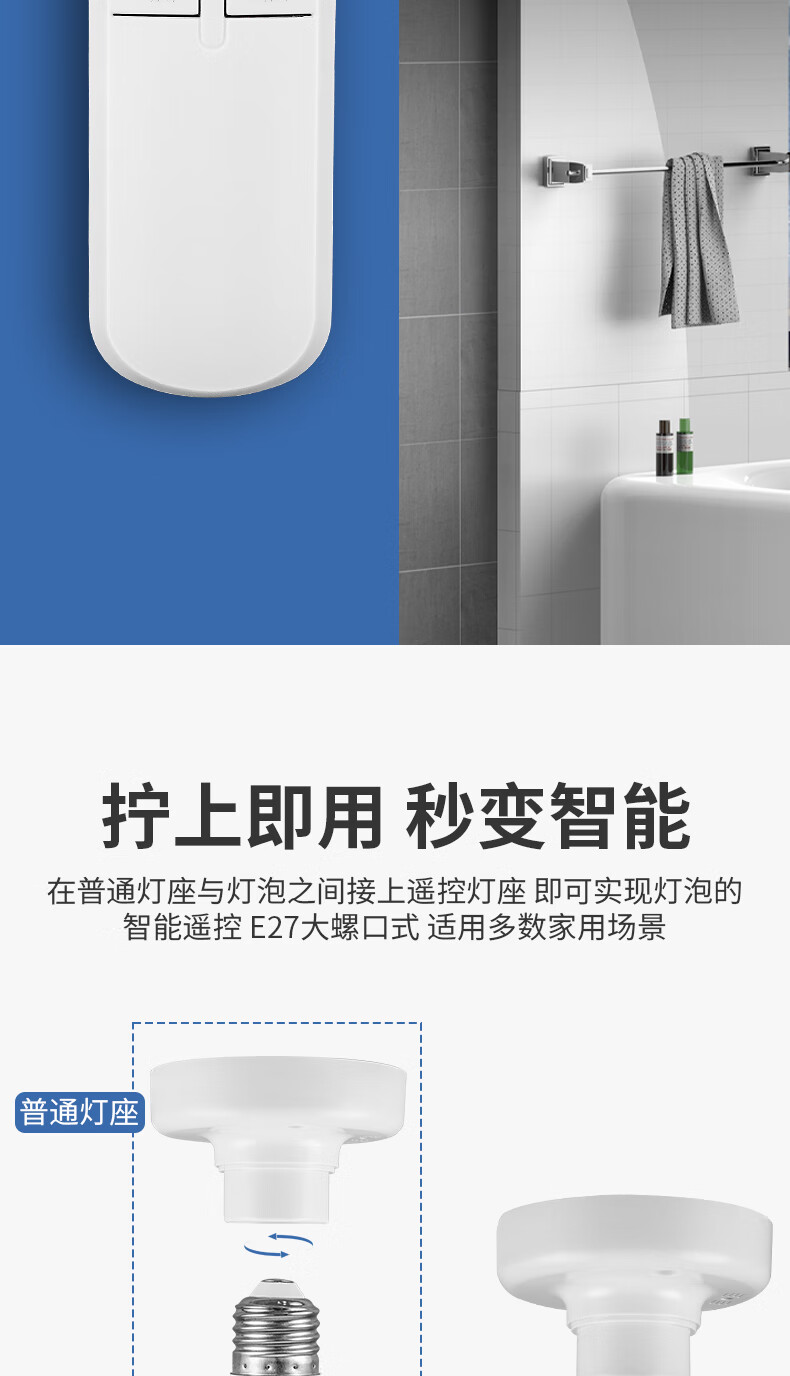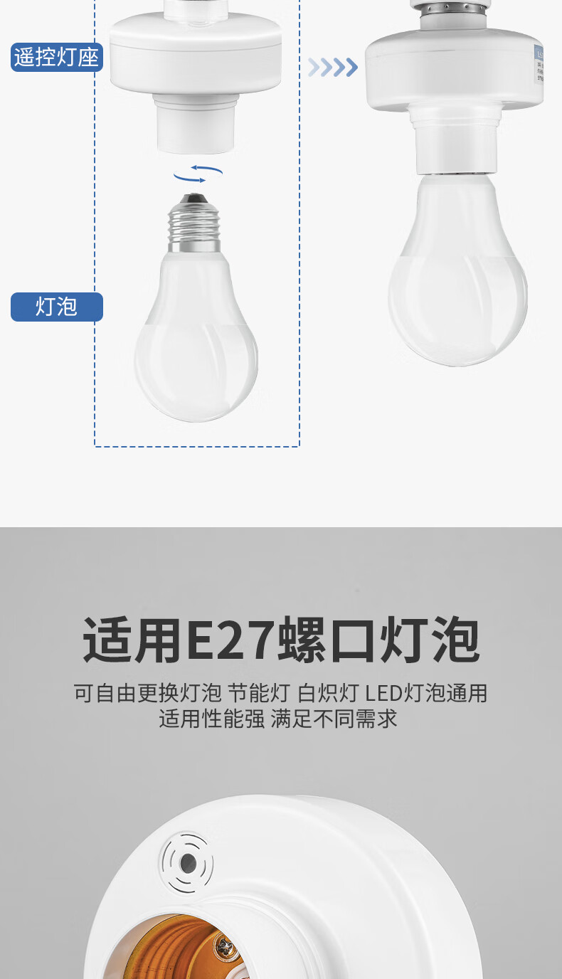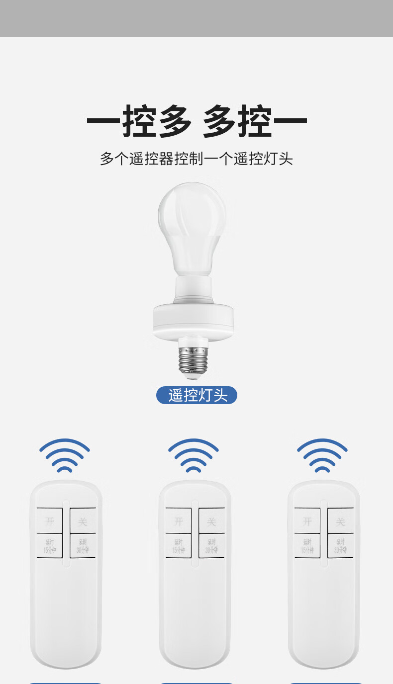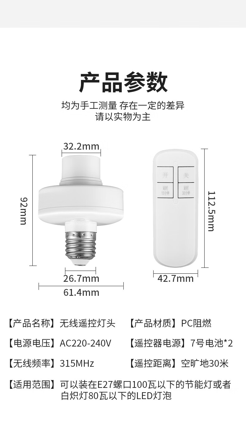 International electrician intelligent remote control lamp holder E27 wireless remote control switch 220V lamp household wireless smart home 1 lamp holder + 1 handheld remote control