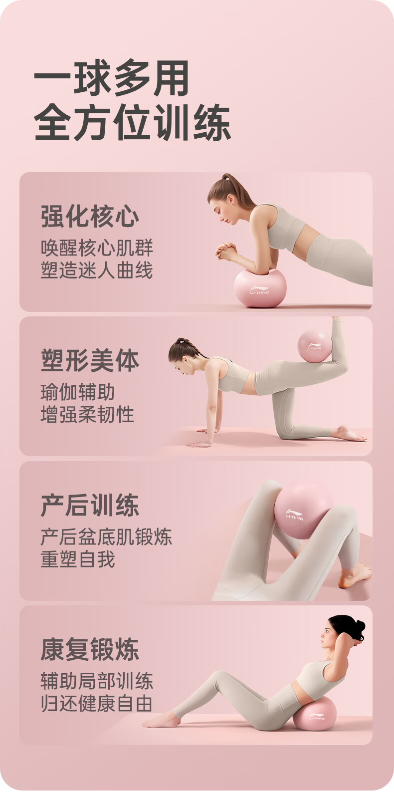 Li Ning Yoga Ball Small Ball Pilates Pregnant Women Pelvic Floor Muscle Fitness Mini 25cm Buttocks Gymnastics Balance Women