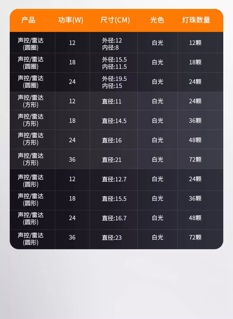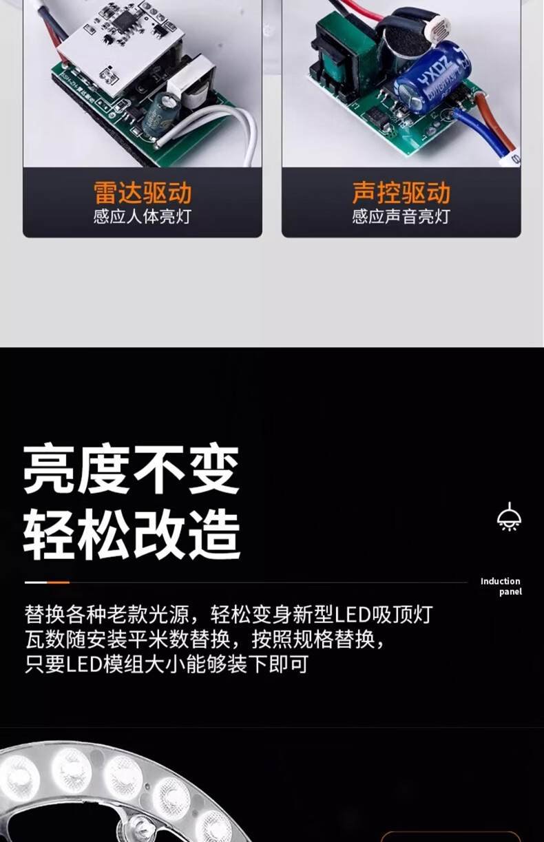 Fanyao LED sound and light control sensor wick 12W white light ceiling sensor replacement light source module