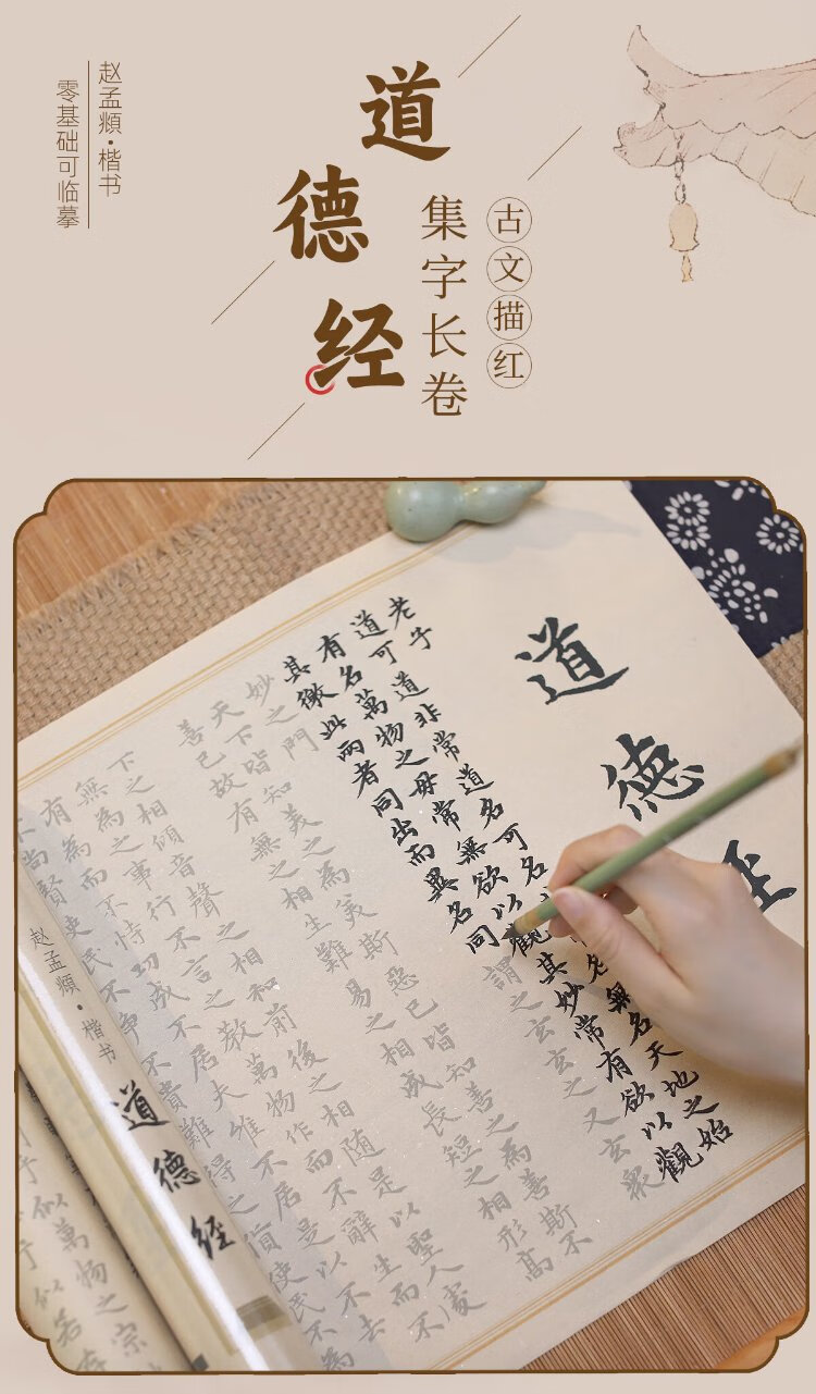 Low price on the whole network, really cheap live broadcast room Wanling Wenyun Tao Te Ching brush calligraphy tracing red long scroll Sun Tzu's Art of War calligraphy copybook Ouyang Xun Zhao Mengfu calligraphy practice calligraphy pen style Linmu beginner's half-life half-cooked rice paper