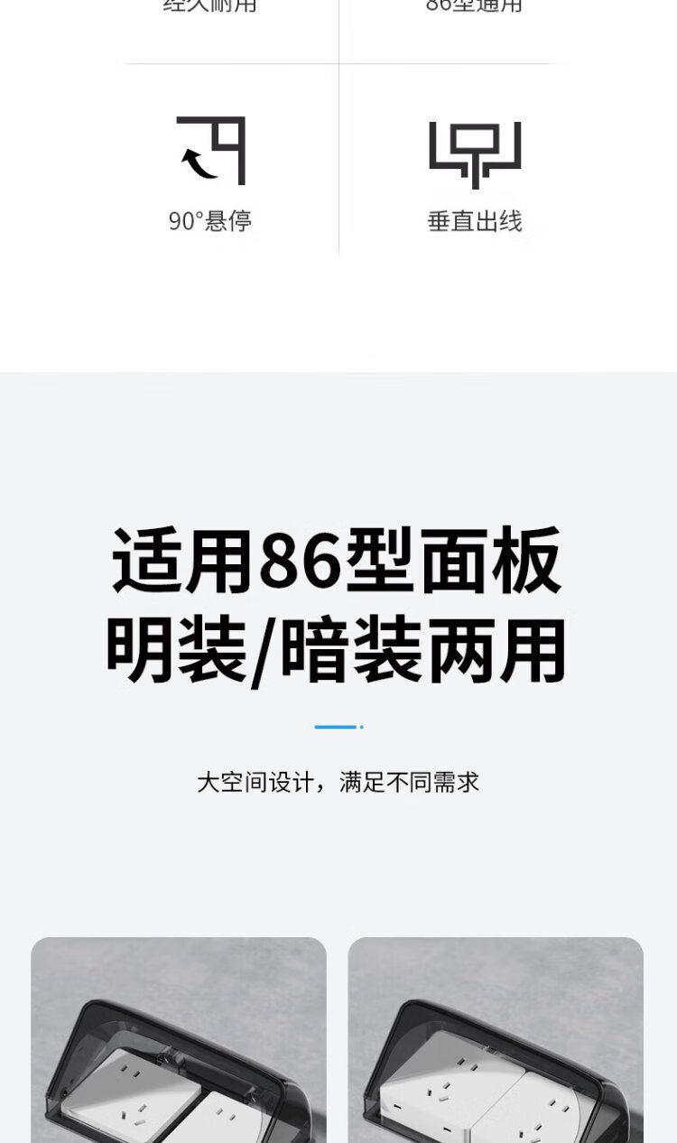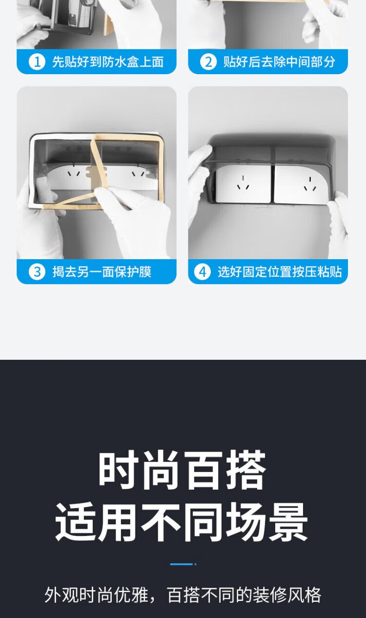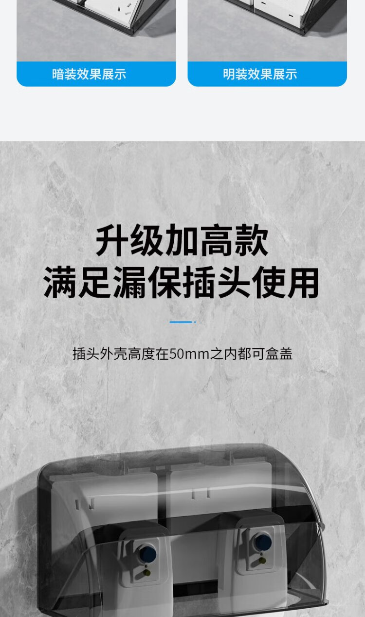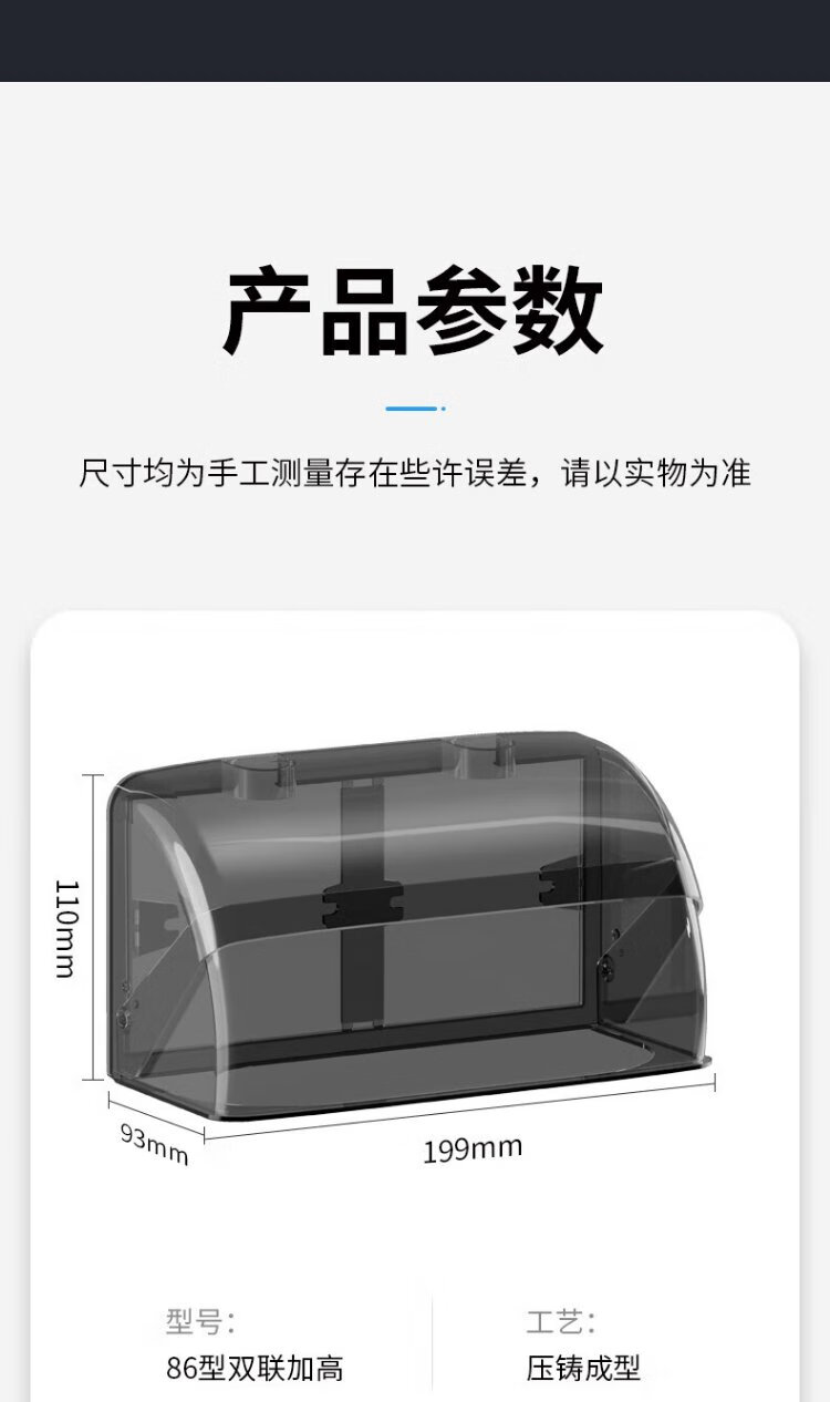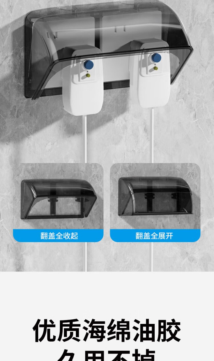 International electrician double-position 86 type switch socket waterproof box adhesive two-position double protection cover bathroom two-position splash-proof box set 86 type double height waterproof box-white transparent