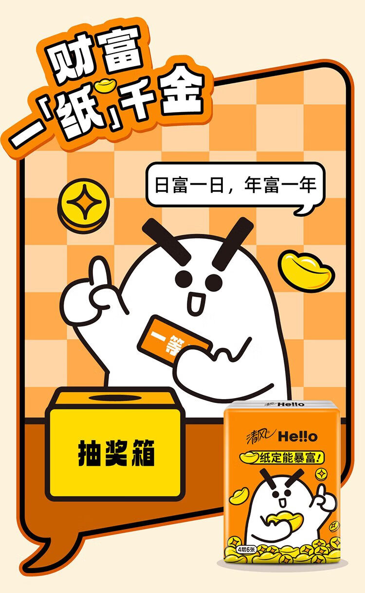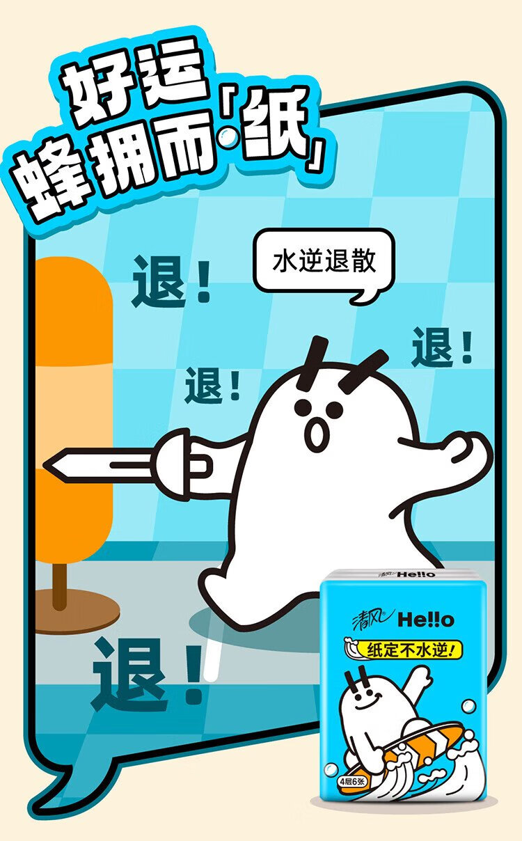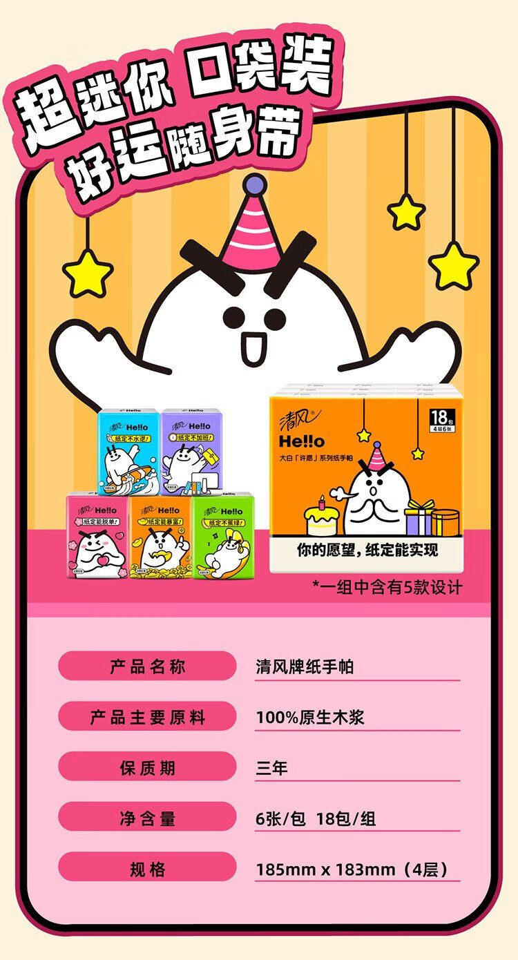 Qingfeng Li Yunrui's same style hello unscented handkerchief paper 4 layers 6 sheets * 18 packs not easy to break when wet