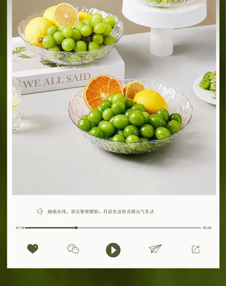 Baiji fruit plate, snack plate, living room household dry fruit plate tray, candy nut plate, glacier pattern light luxury fruit plate, two packs