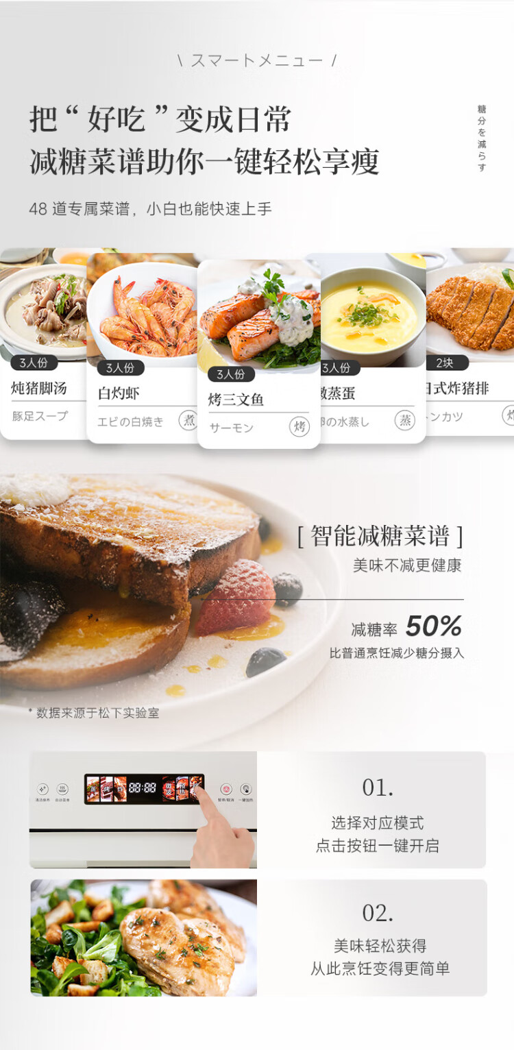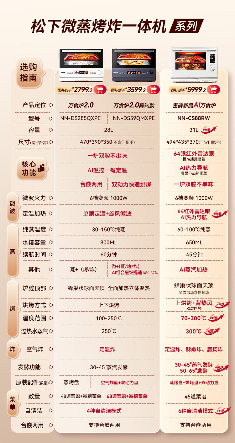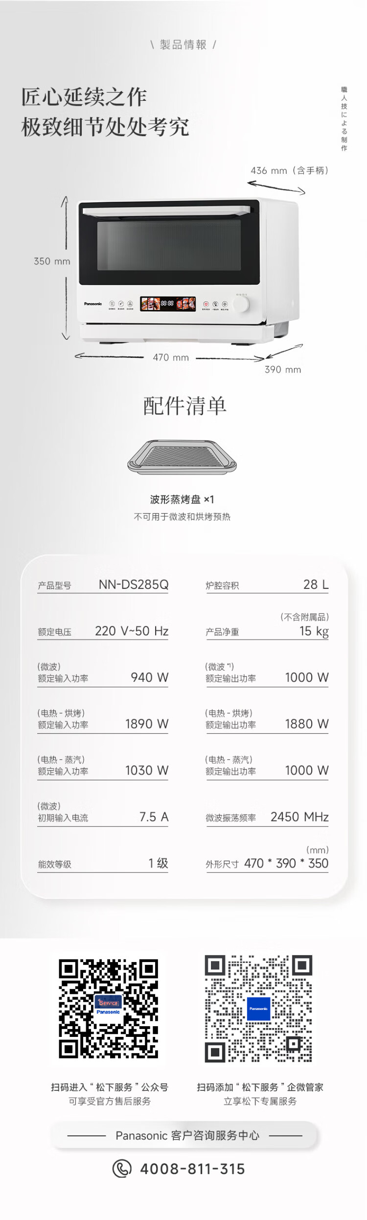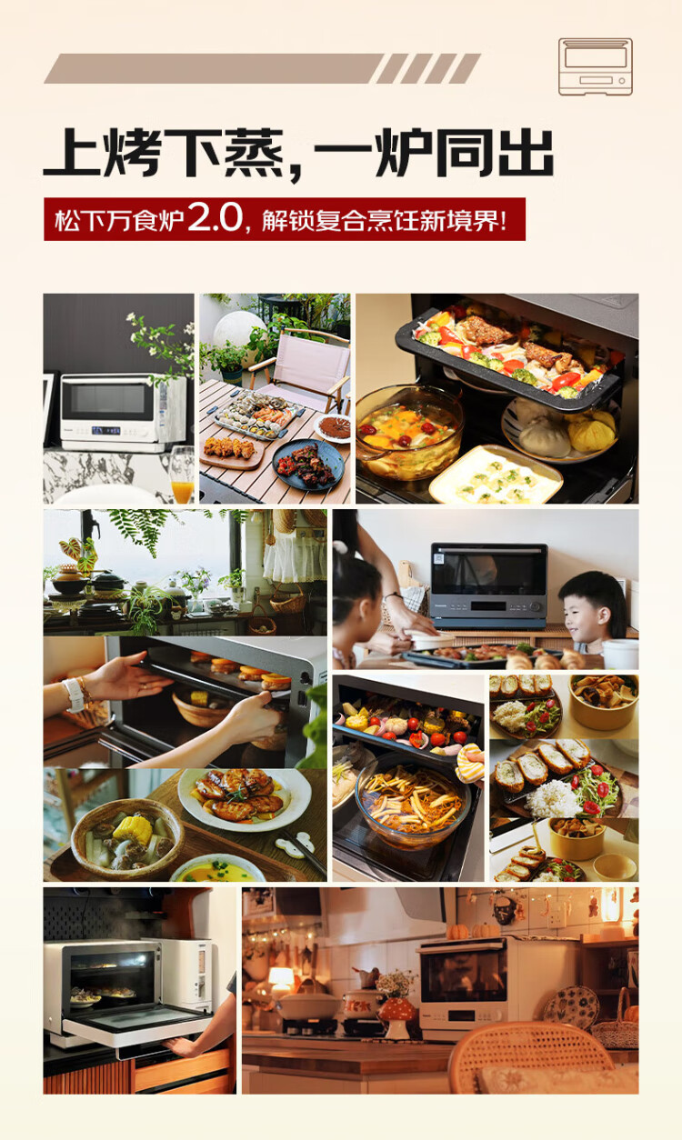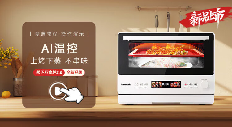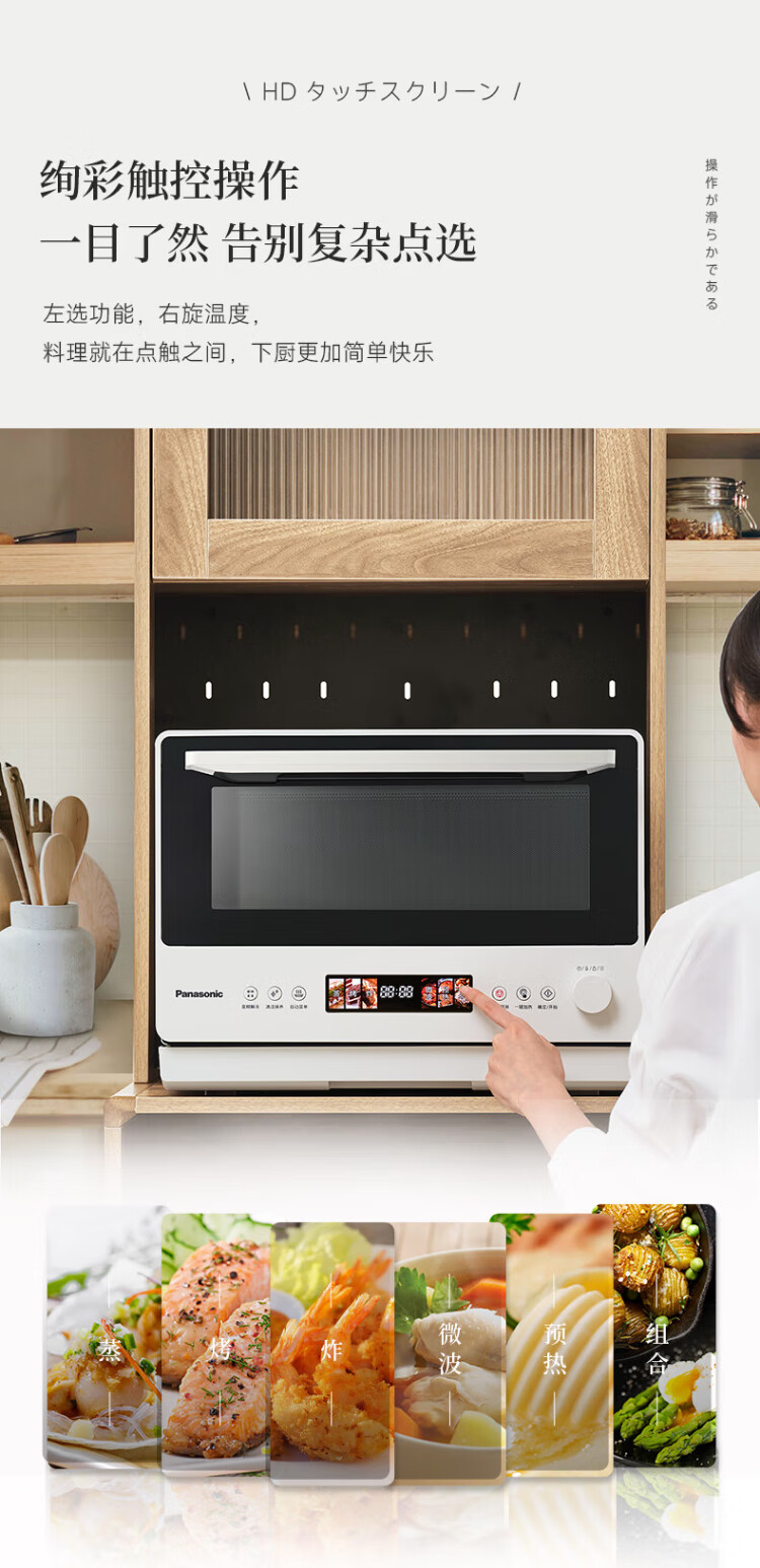 Panasonic (Panasonic) national subsidy top grill and bottom steam oven 2.0 color screen touch 28L large capacity household variable frequency microwave oven micro-steaming, grilling and frying all-in-one machine NN-DS285Q