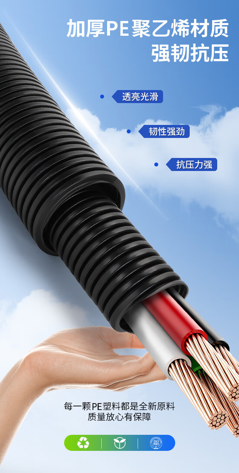 Andatong corrugated pipe PE plastic wire pipe wire and cable protection pipe threading sleeve openable air conditioning line hose PE-AD13 (inner diameter 10)/20 meters