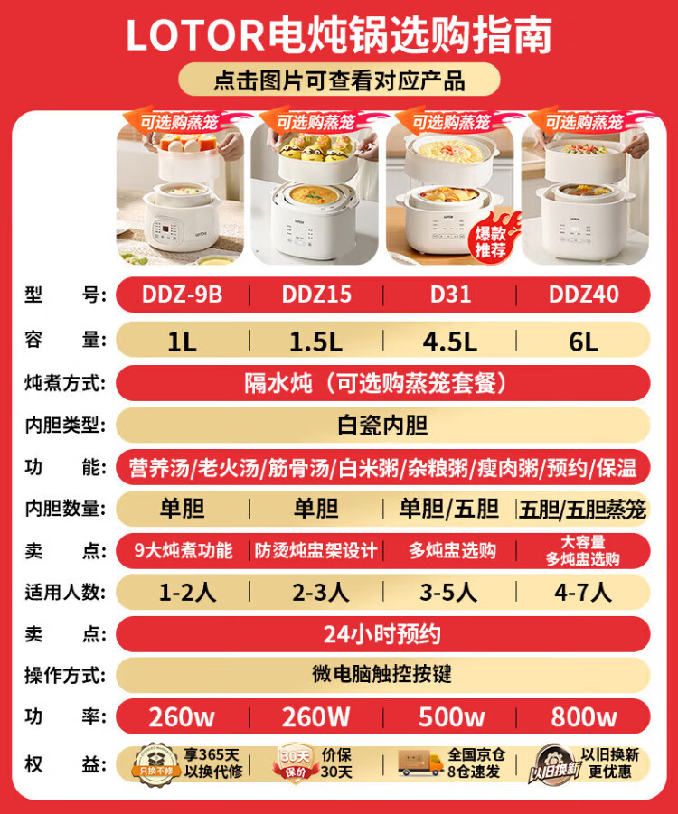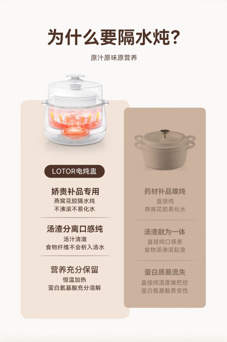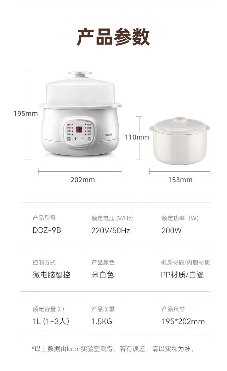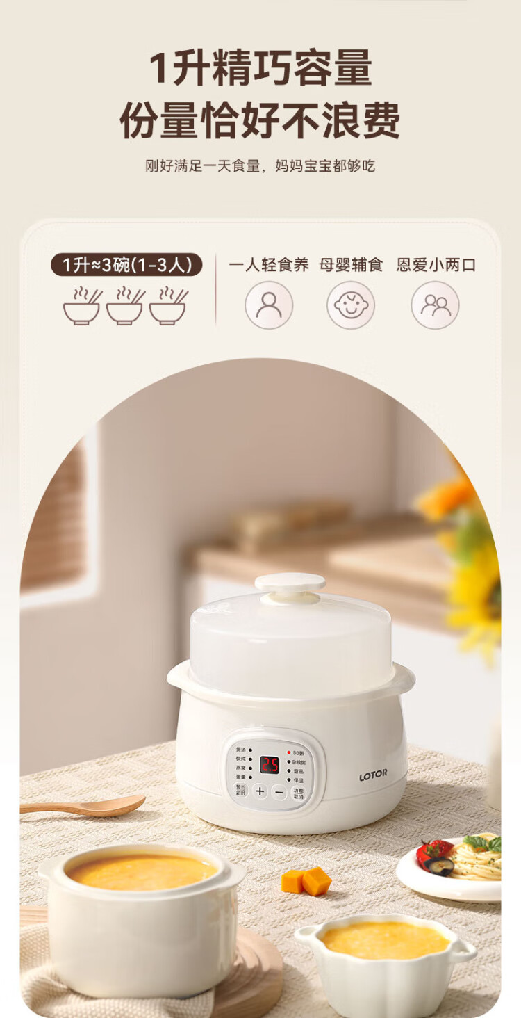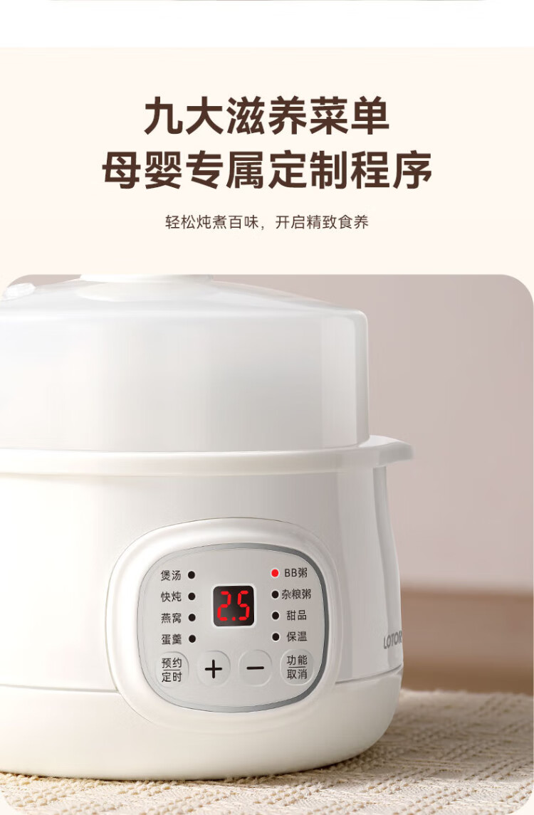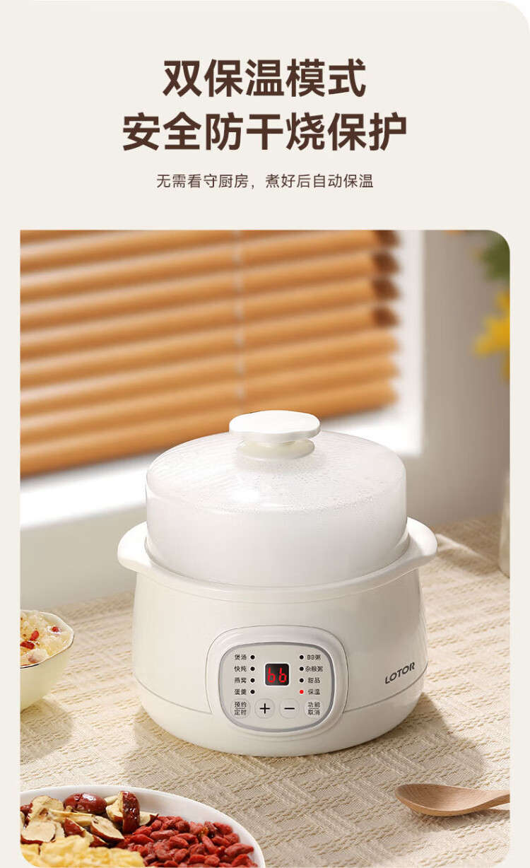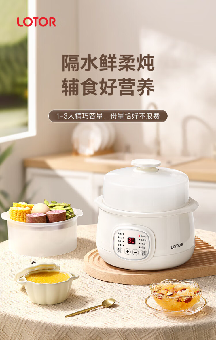 LOTOR multi-function electric stew pot, household water-proof stew pot, small capacity soup pot, bird's nest stew pot, stew pot, baby porridge artifact DDZ-9B basic model