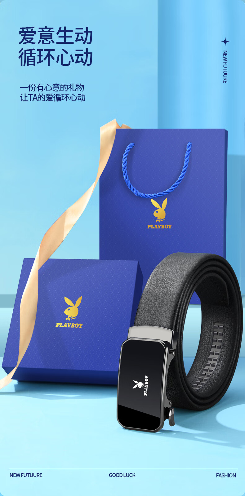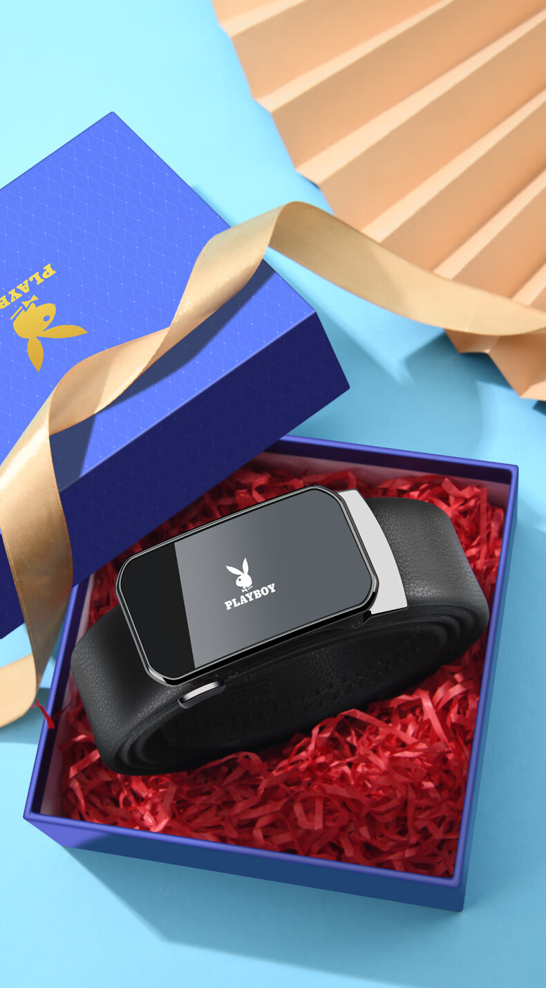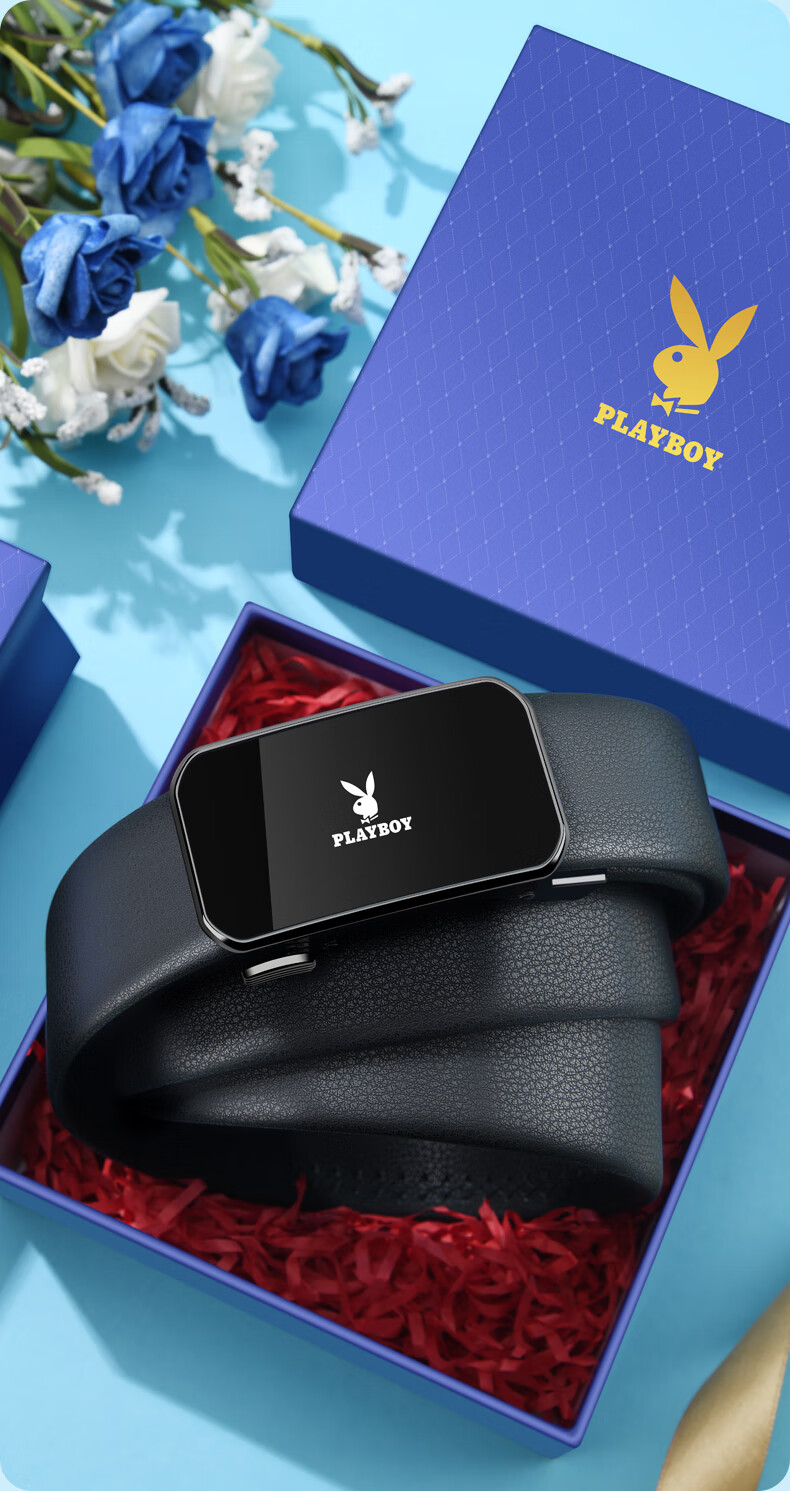 Playboy (PLAYBOY) gift box belt men's automatic buckle belt cowhide business casual pants belt practical birthday gift for husband and father