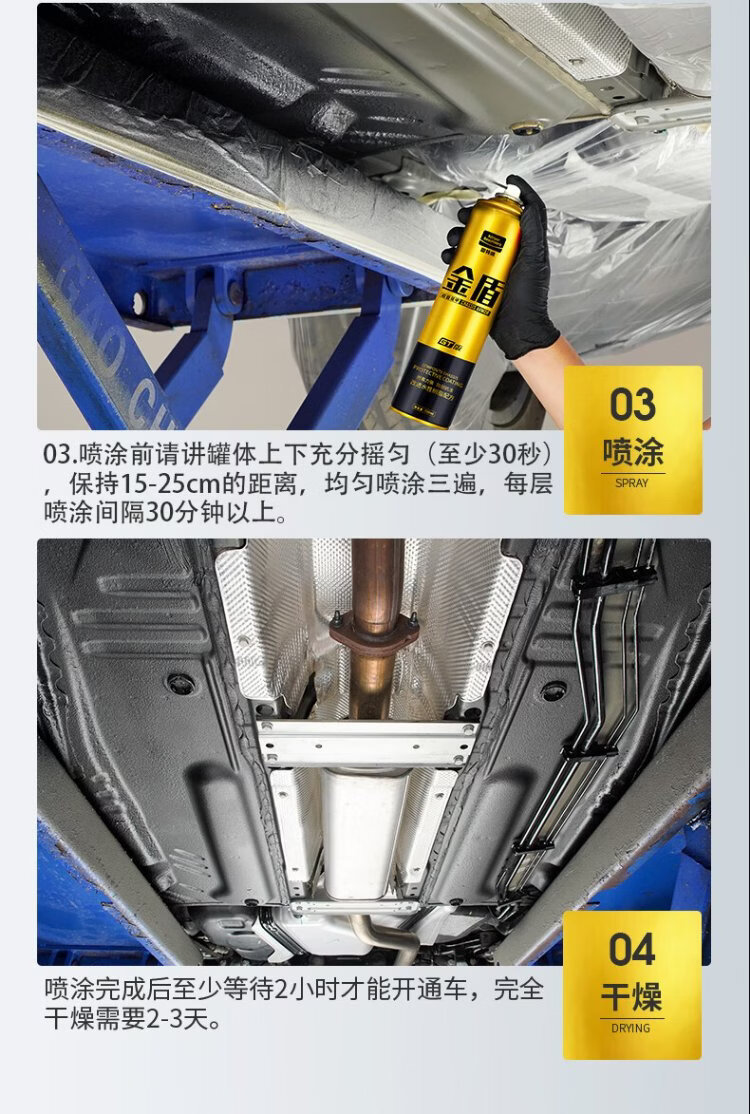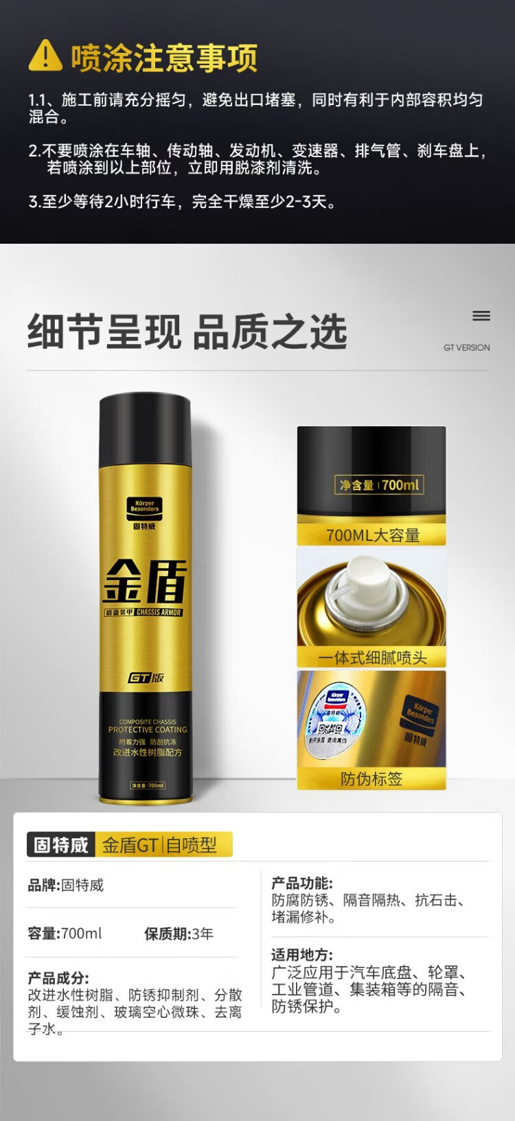 Goodway Automotive Chassis Armor Paint Golden Shield Chassis Armor Self-spraying Anti-rust Sound Insulating Glue 700ml*3 Bottles
