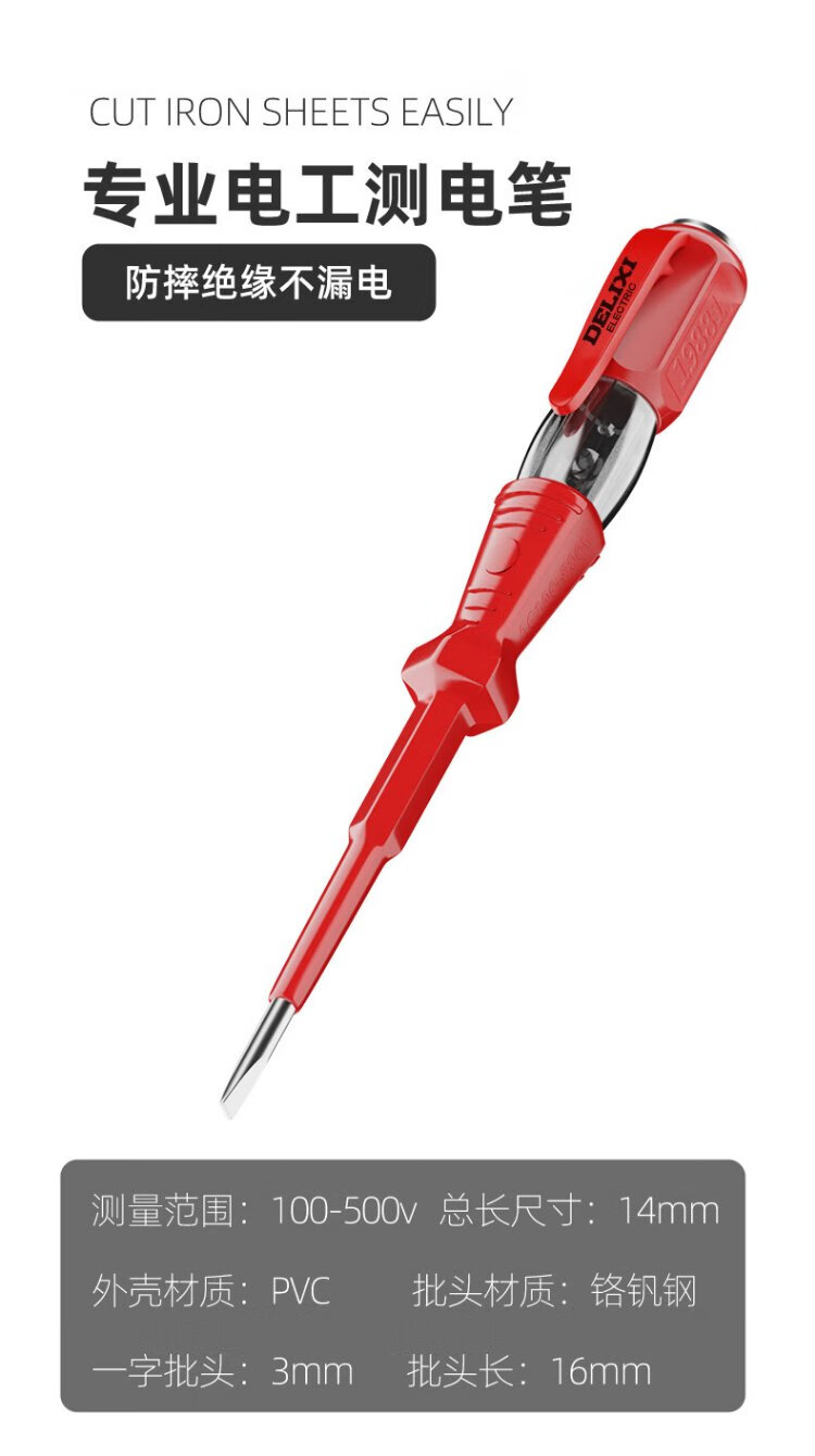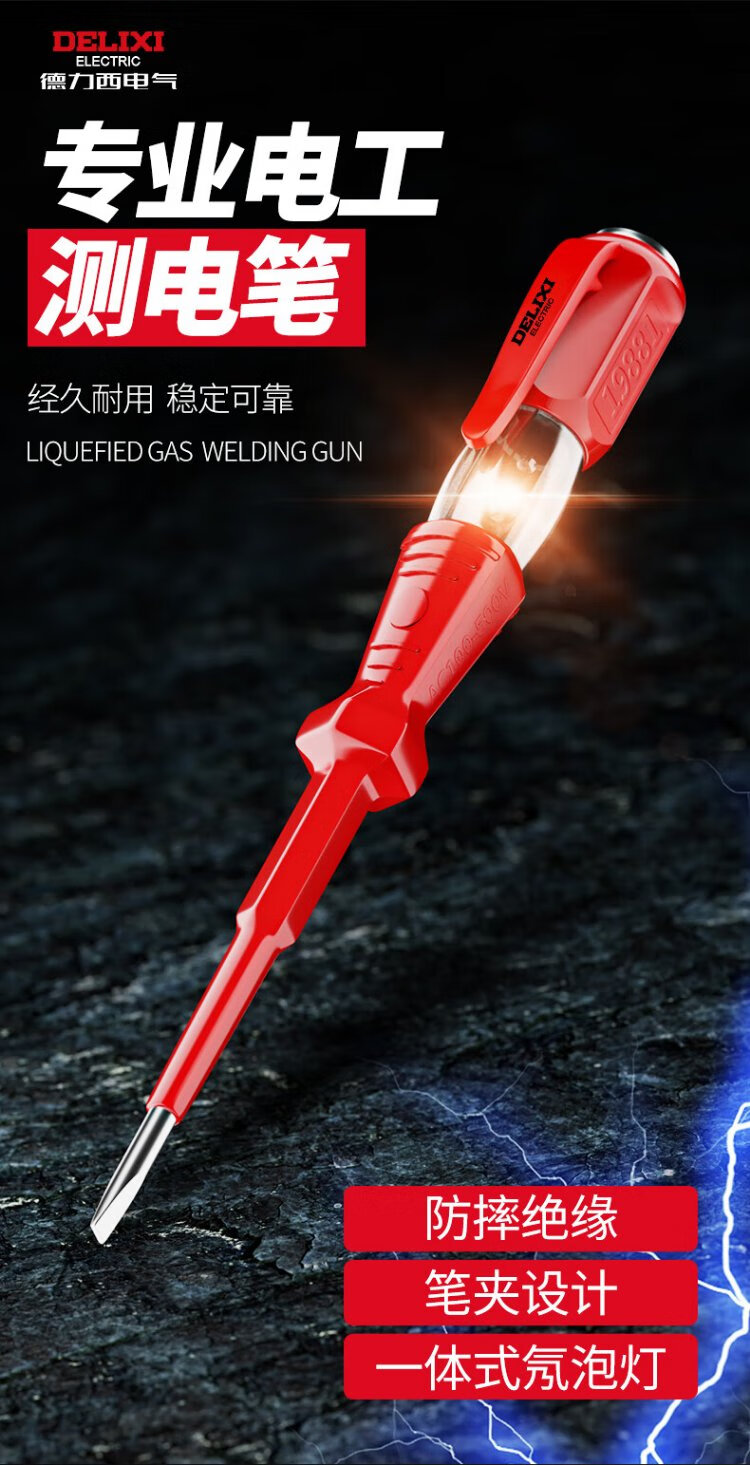 Delixi electric test pen electrician special high brightness detection breakpoint zero line live wire household tool induction test pen