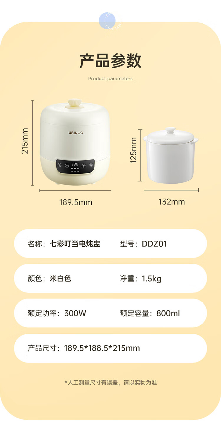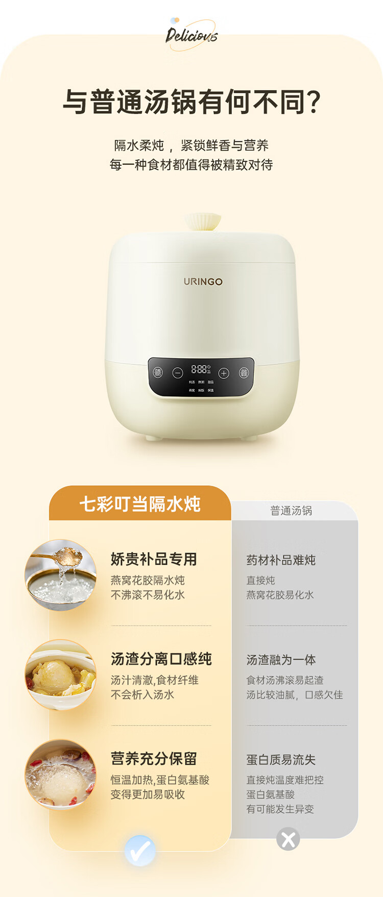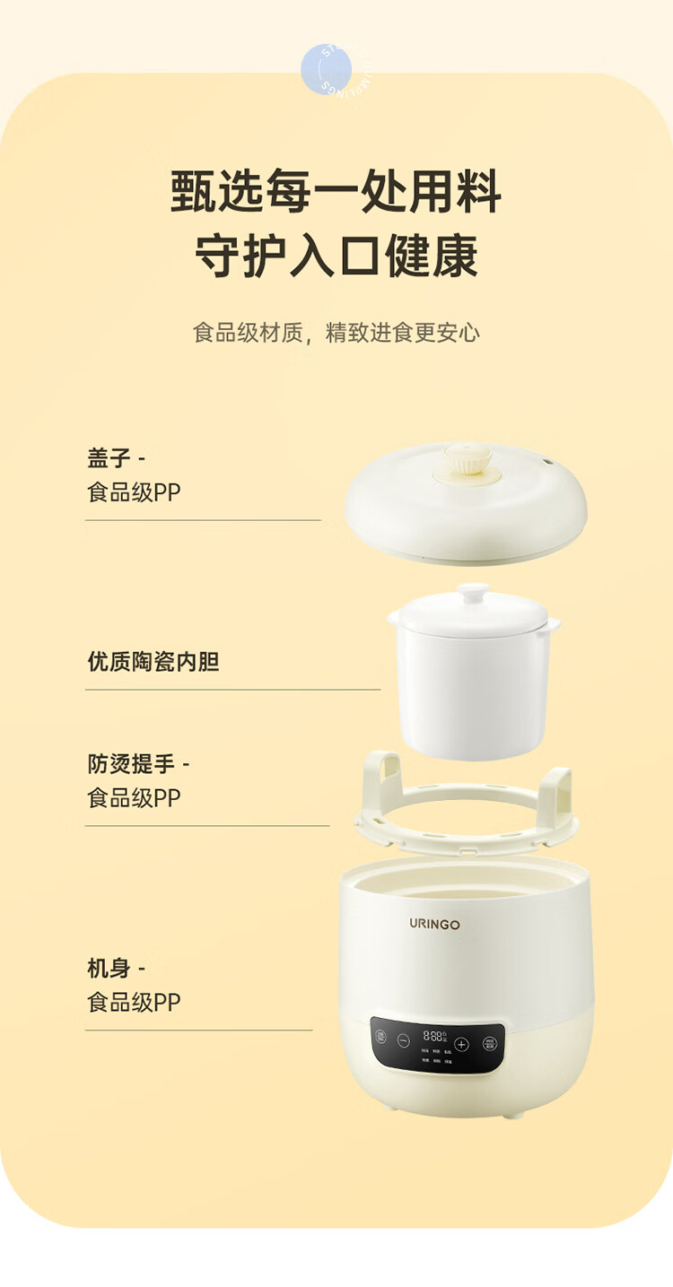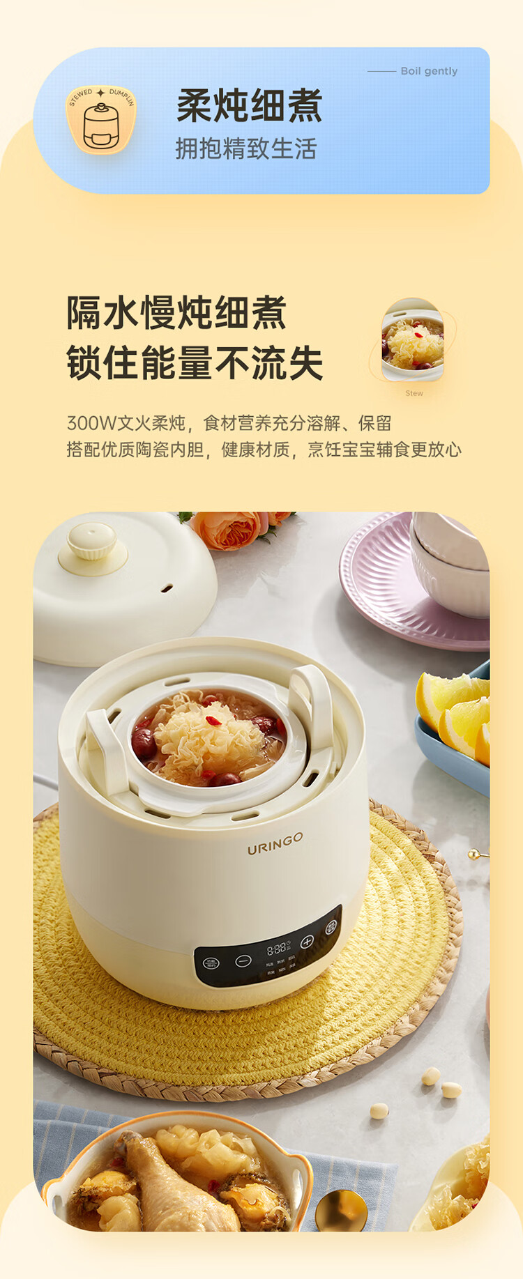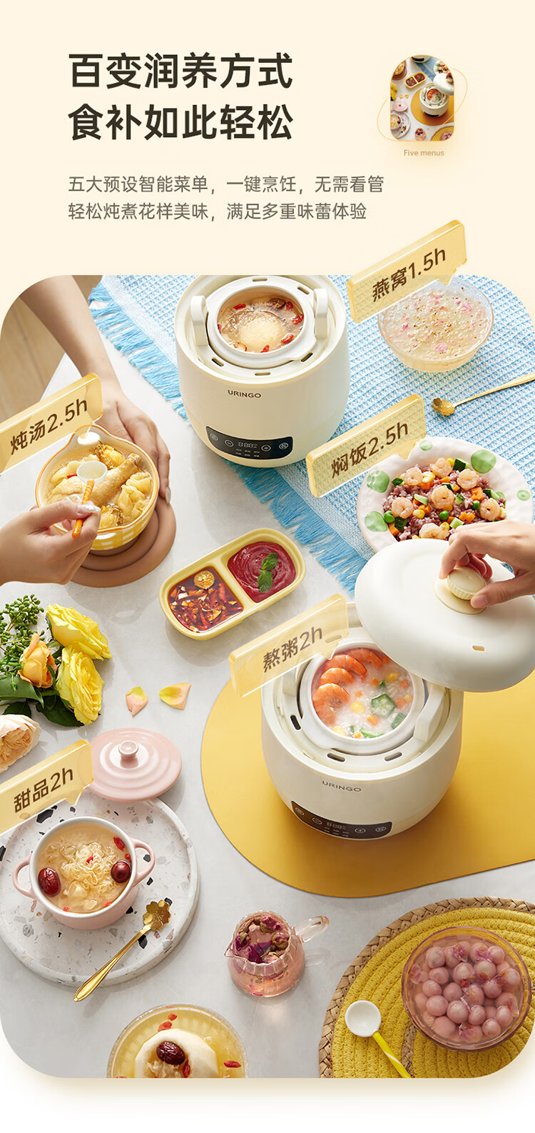 90% new Colorful Dingdang (URINGO) electric stew pot, water-proof stew pot, electric casserole, 0.8L white porcelain inner pot, dry-proof mini electric stew pot, bb pot, baby food supplement pot DDZ01