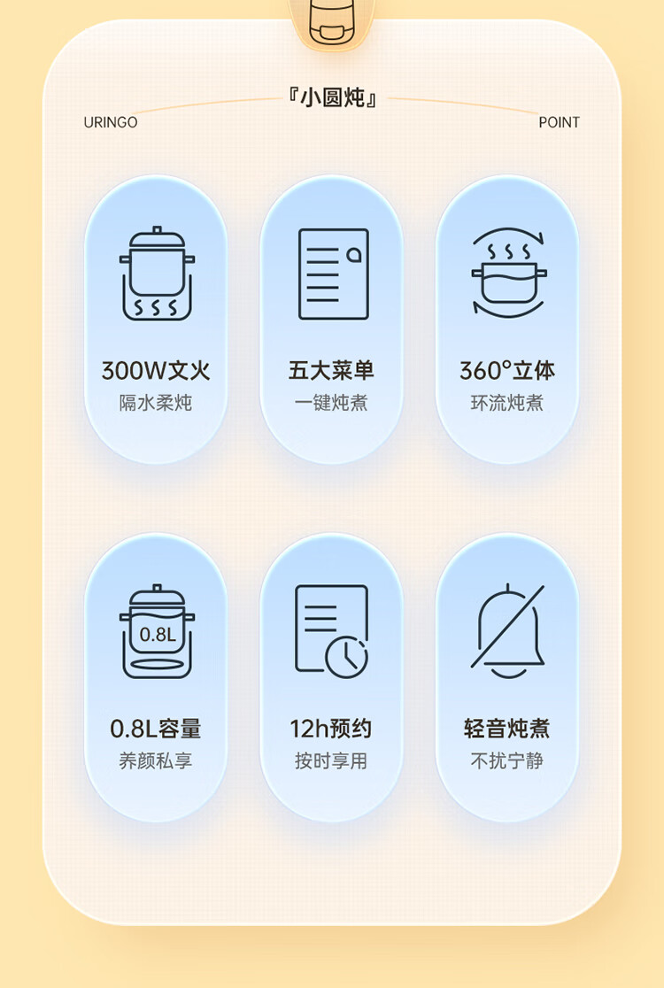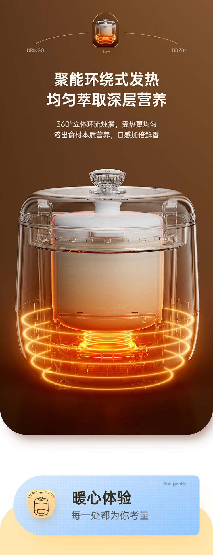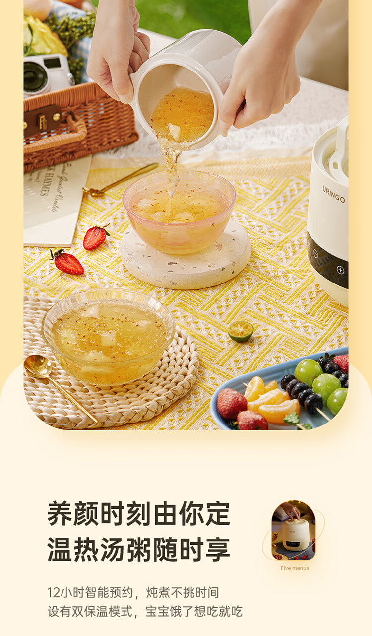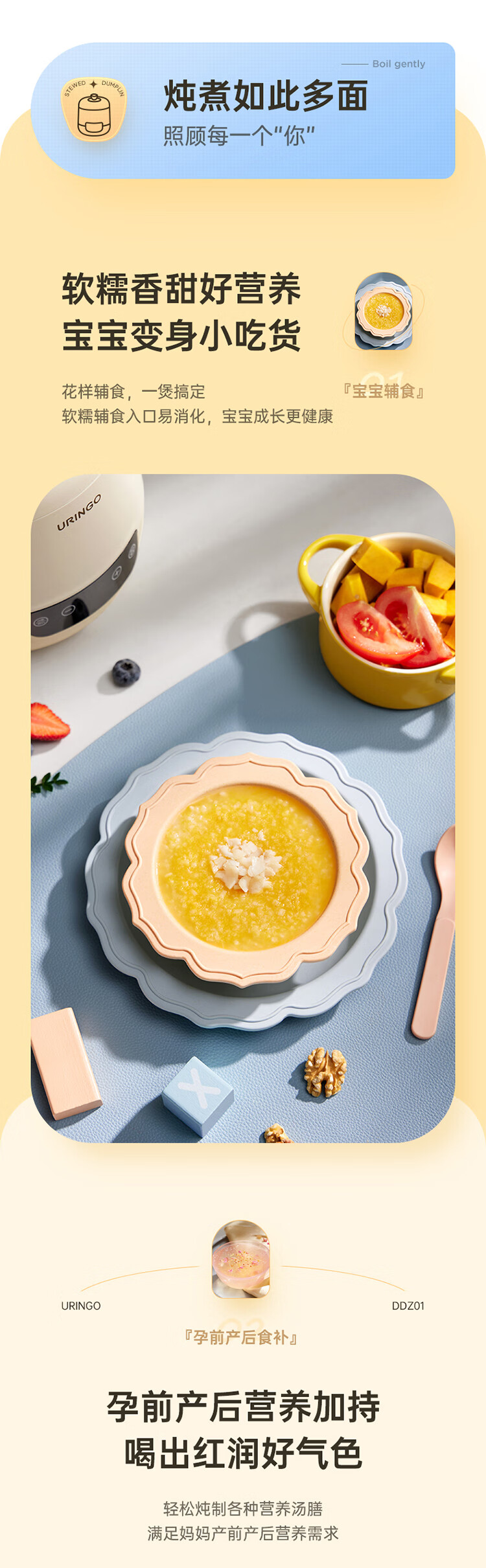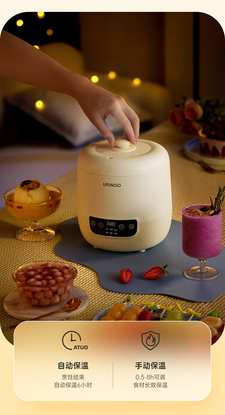 90% new Colorful Dingdang (URINGO) electric stew pot, water-proof stew pot, electric casserole, 0.8L white porcelain inner pot, dry-proof mini electric stew pot, bb pot, baby food supplement pot DDZ01