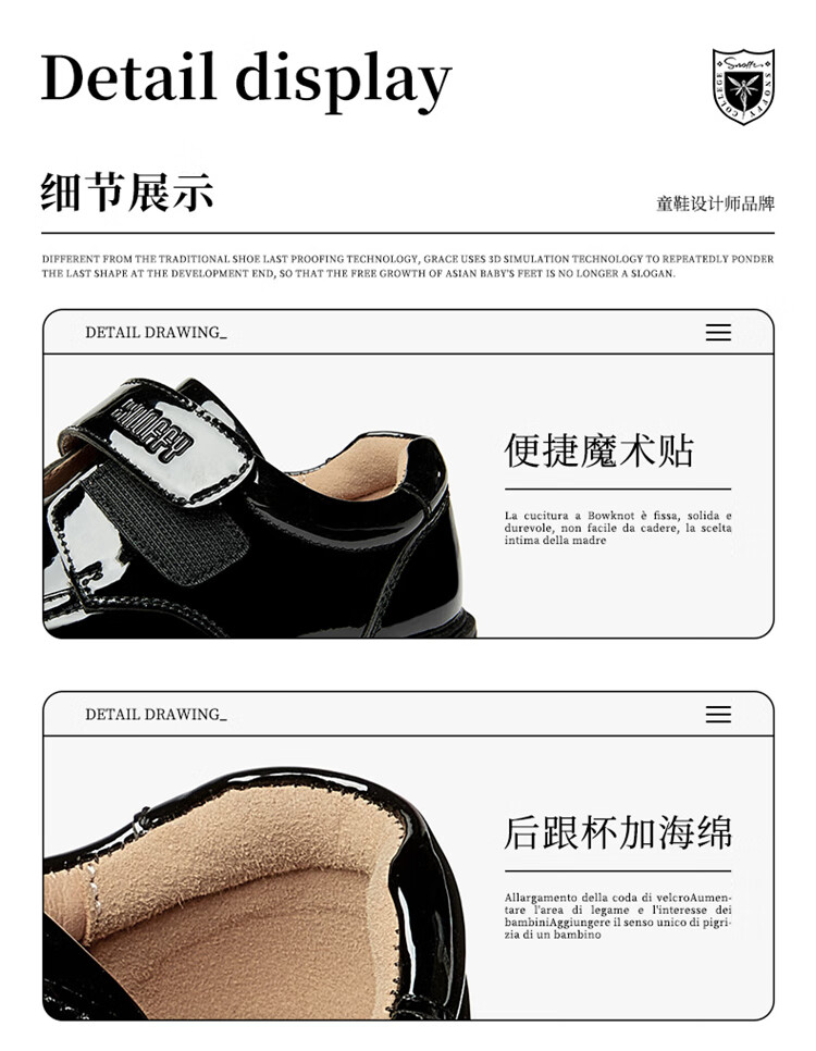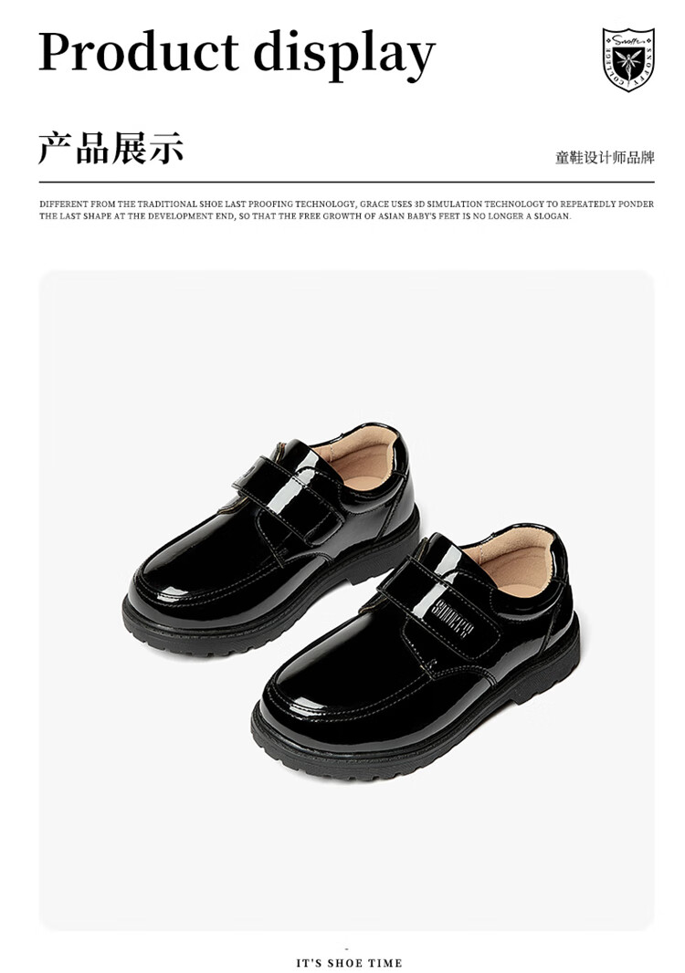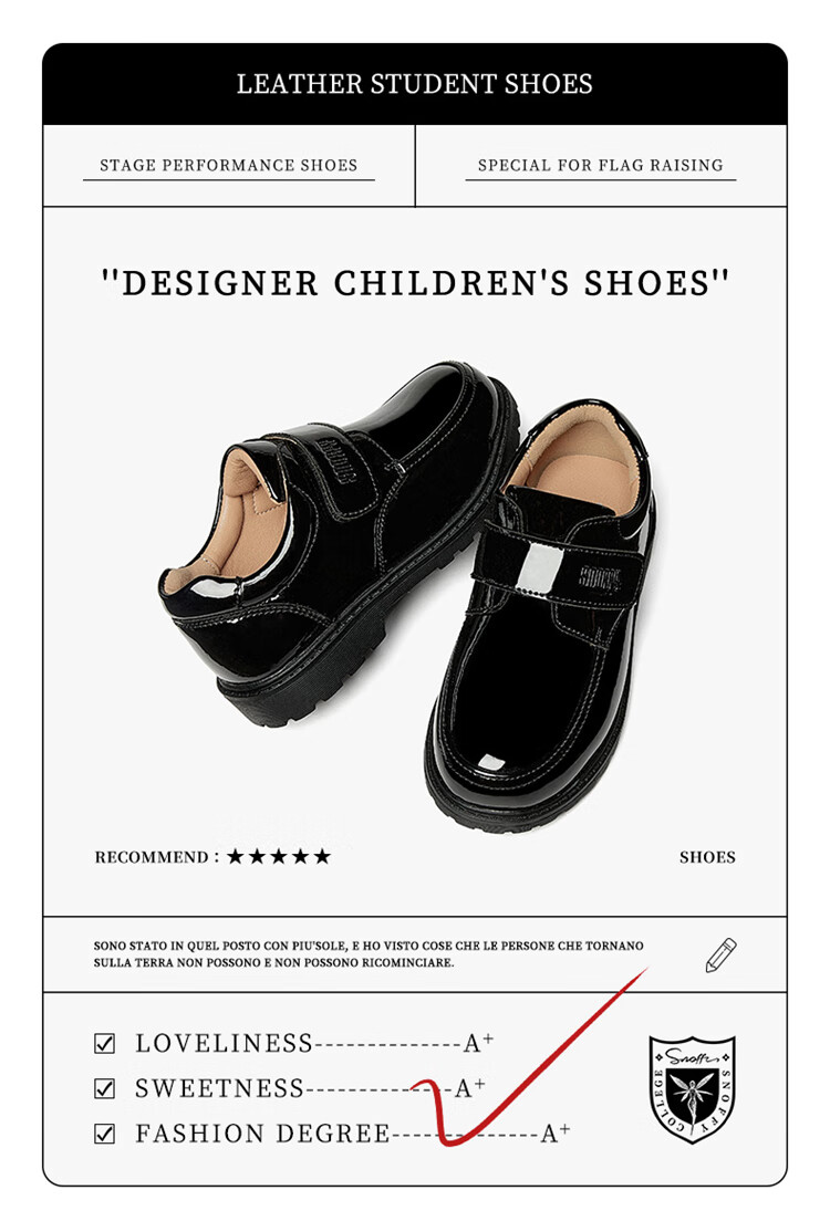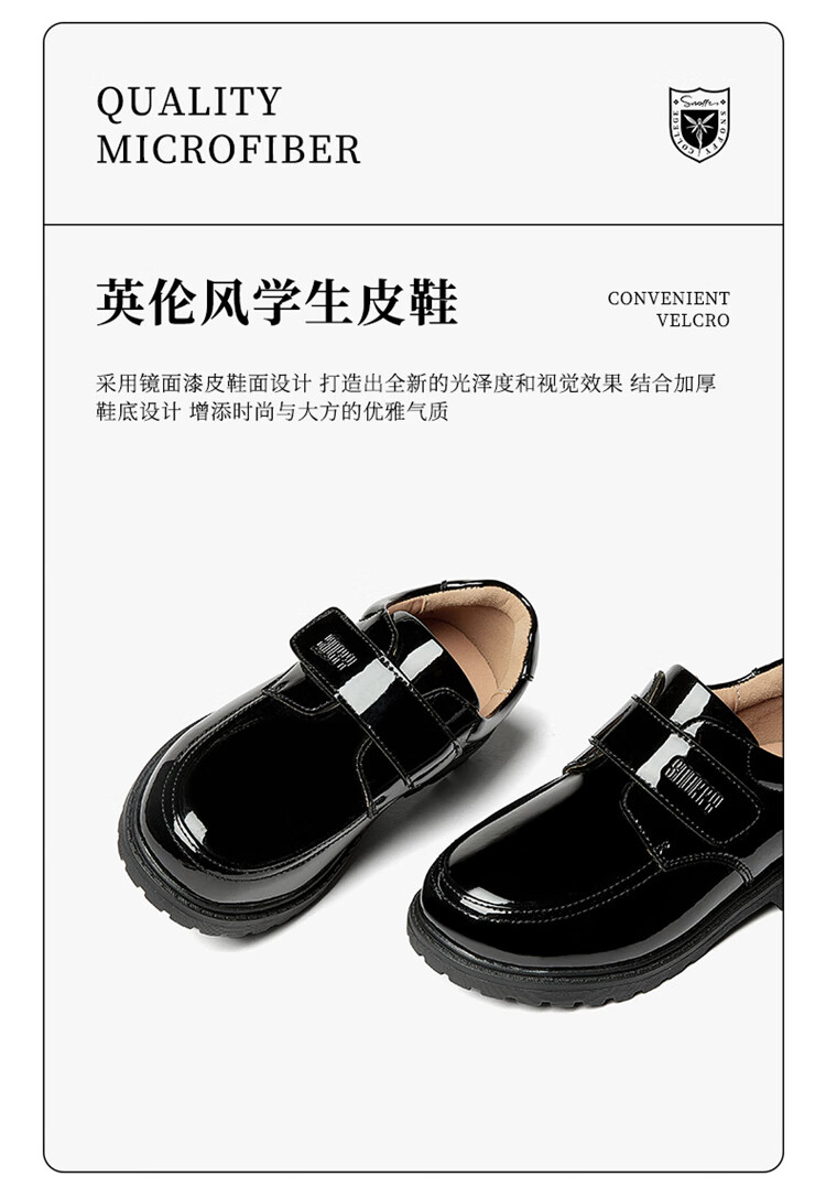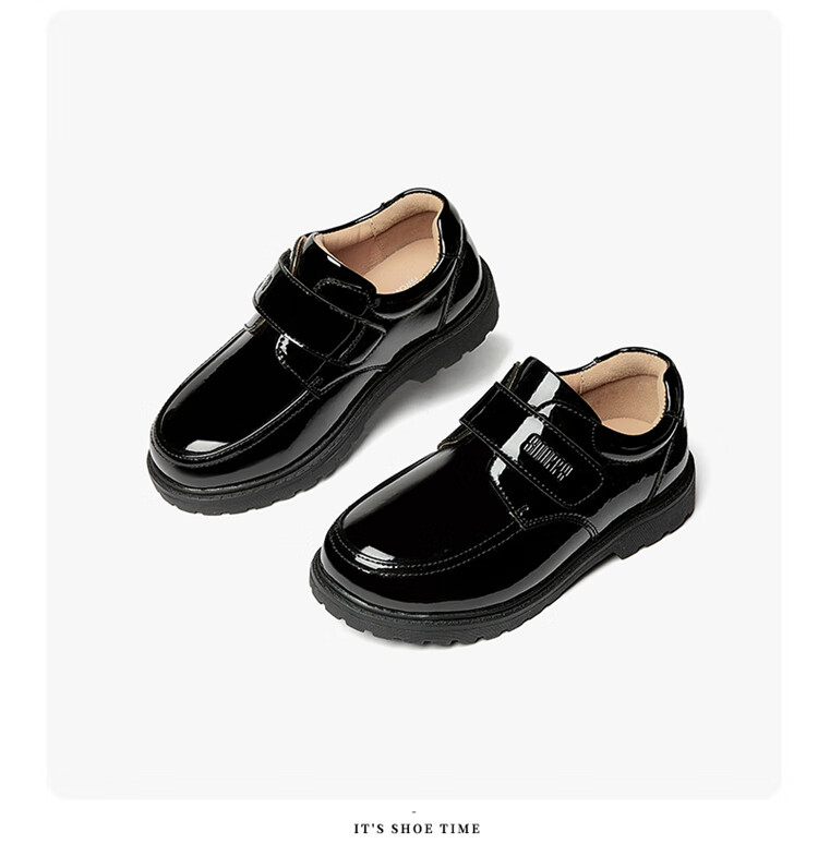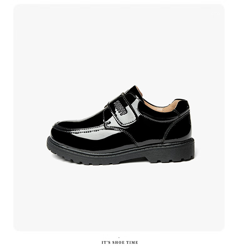 Snuffy boys student leather shoes campus performance shoes children's black leather shoes suit small host dress shoes bright black 40