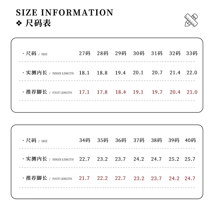 China (cm) 36 - 37 38 - 39 40 - 42 43 - 44 45 - 47