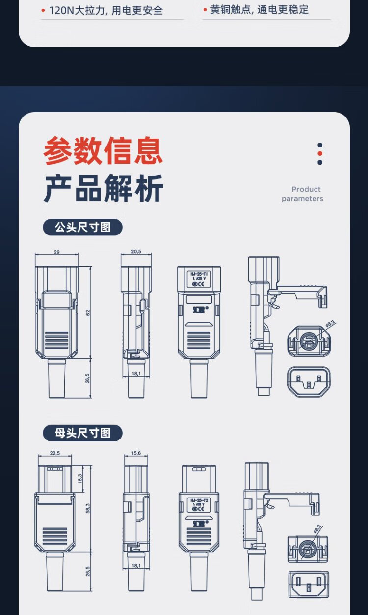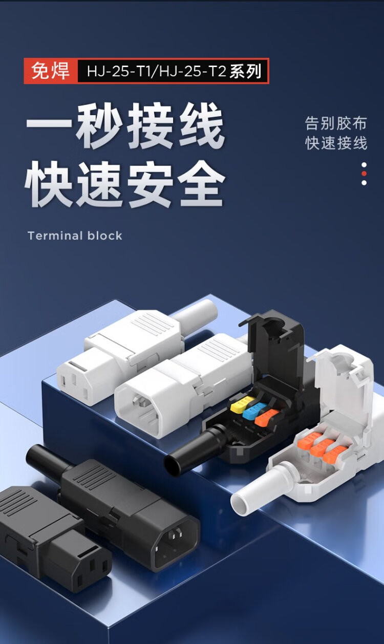 Huijun quick crimping plug AC power butt connector three vertical ports removable power plug female black HJ-25-T2