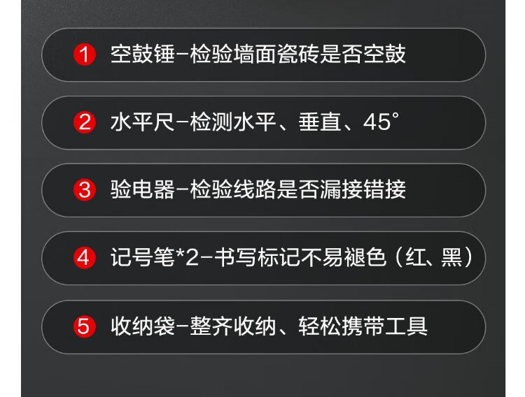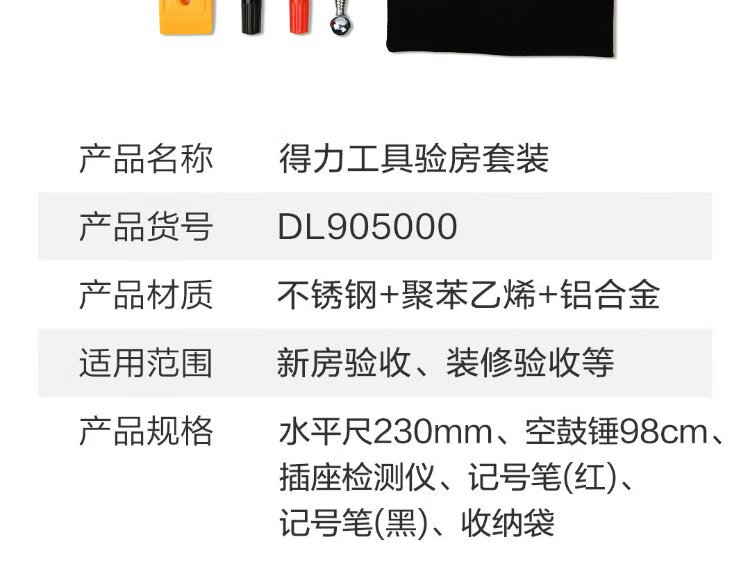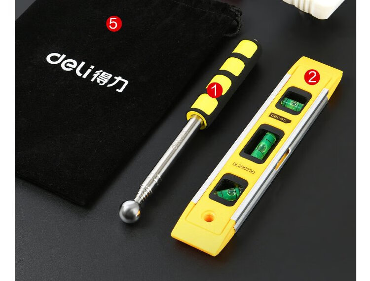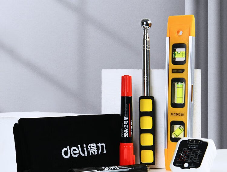 Deli home inspection kit, floor and wall tile inspection, empty drum hammer, level ruler, marker pen, 6-piece set