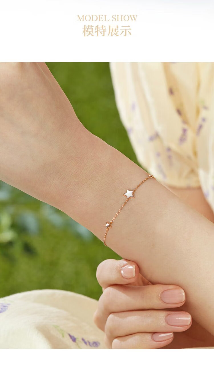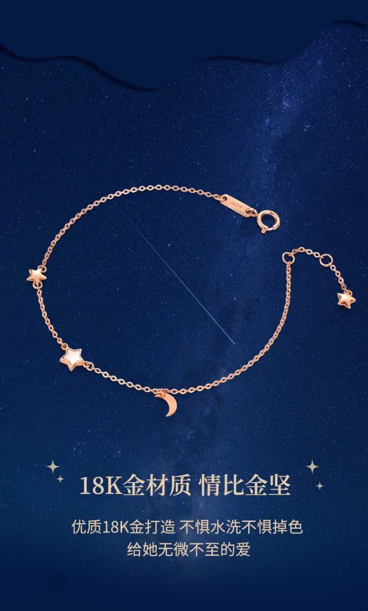 Promise of love, accompanied by stars and moon, 18K color gold bracelet, rose gold jewelry for women, anniversary birthday gift for girlfriend