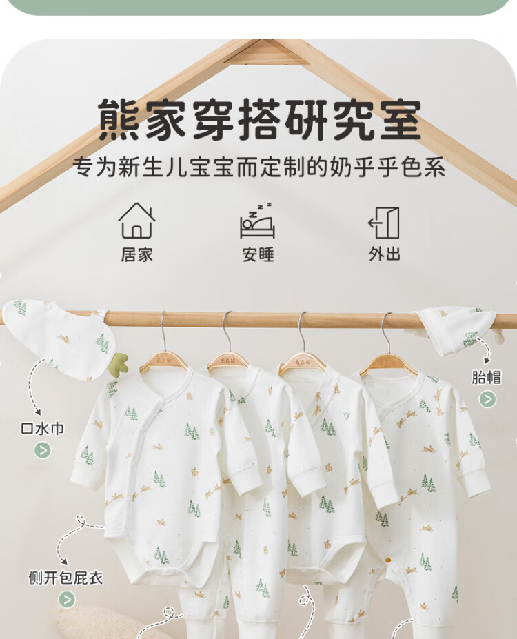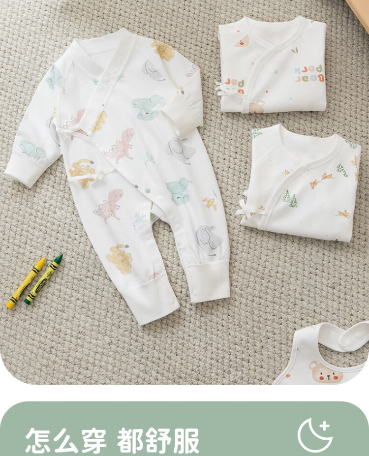 Good Bear Newborn Clothes Autumn and Winter Baby Clothes Long-Sleeved Strap One-piece Baby Cotton Home Autumn Pajamas