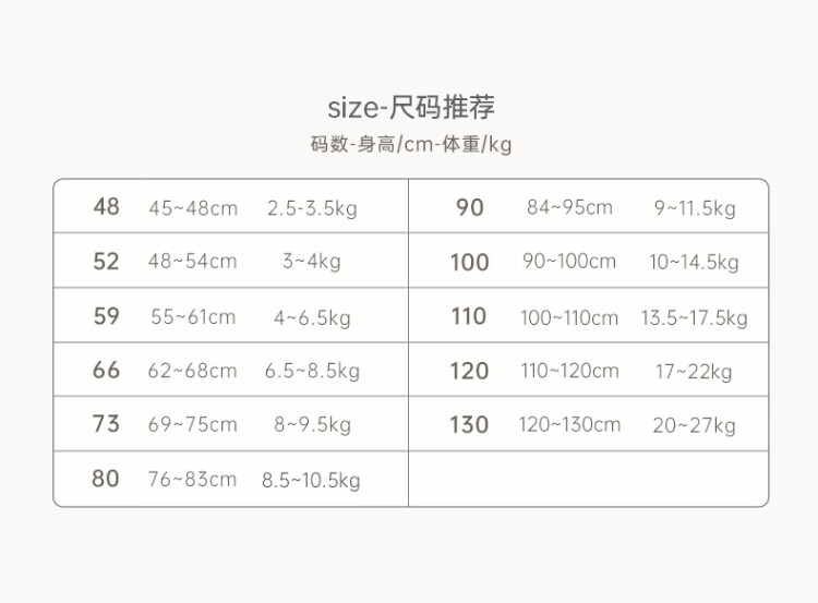 China (cm) 160-165/84-86 165-170 / 88-90 167-172 / 92-96 168-173 / 98-102 170-176 / 106-110