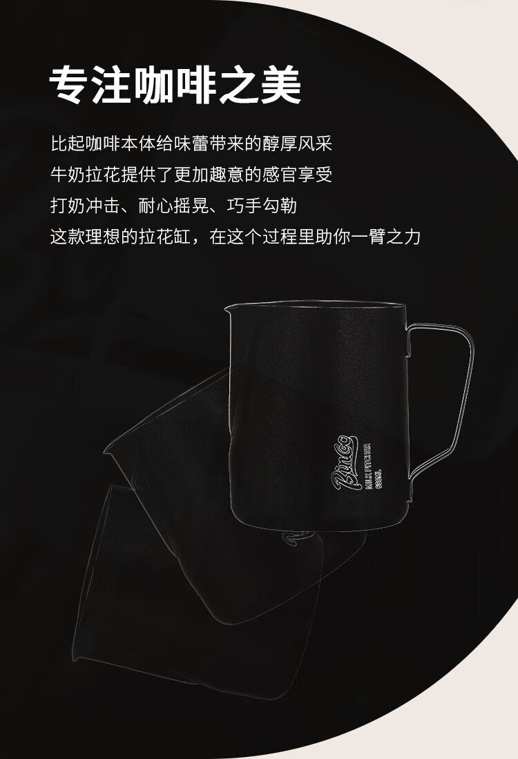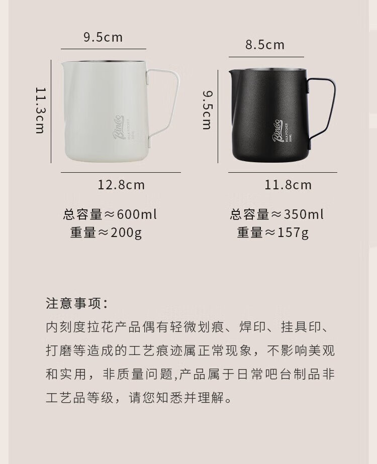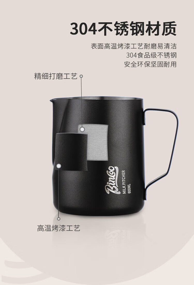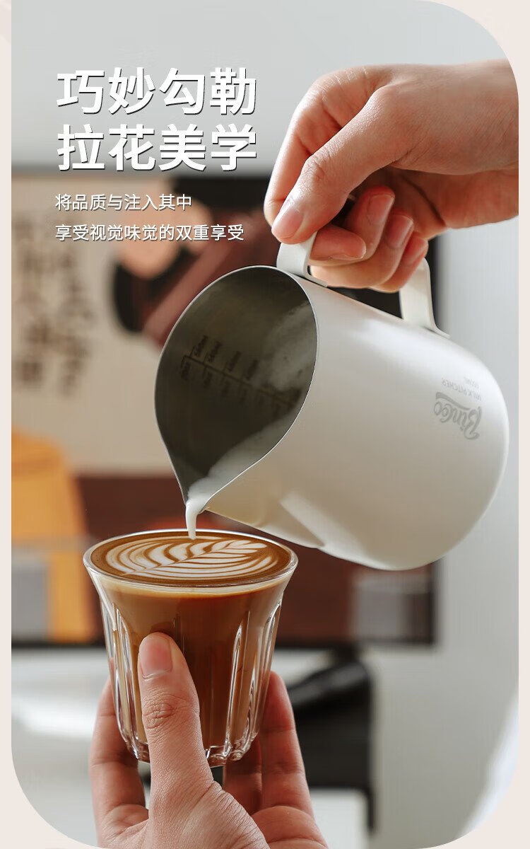 Bincoo coffee latte art cylinder round mouth latte art cup milk foam cup latte art artifact stainless steel professional utensil milk tank