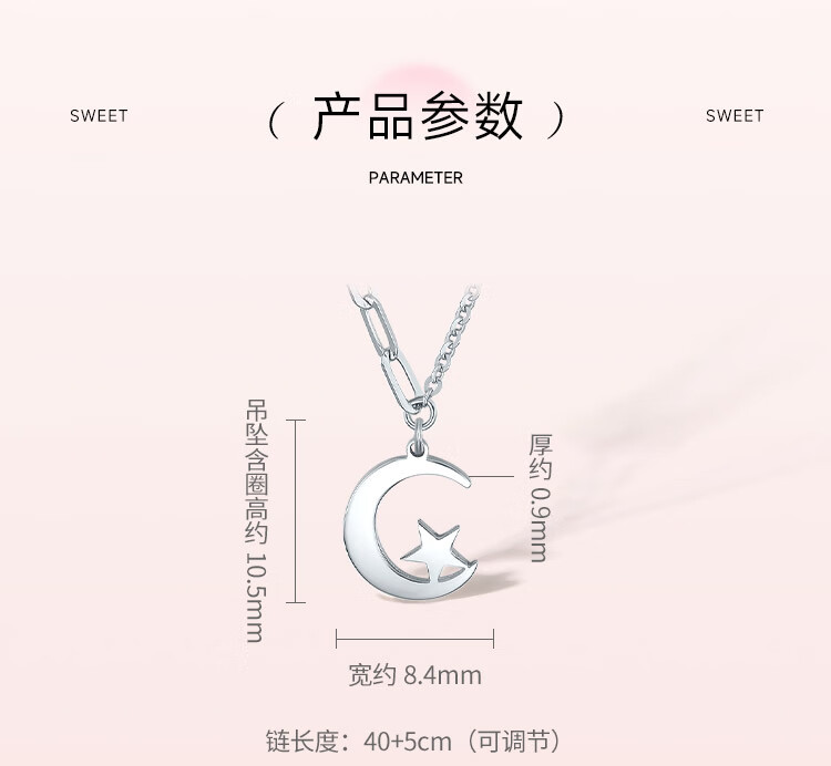 Saturday Fortune PT950 platinum necklace female star moon pendant B0612679 about 3.58g 40+5cm birthday gift