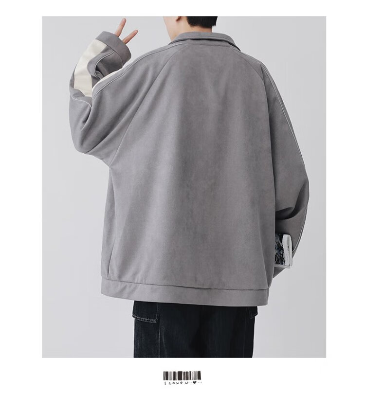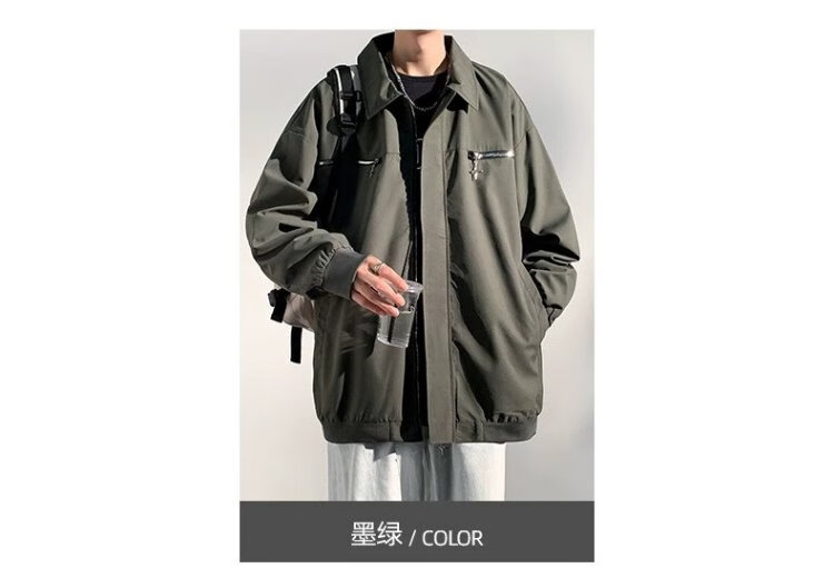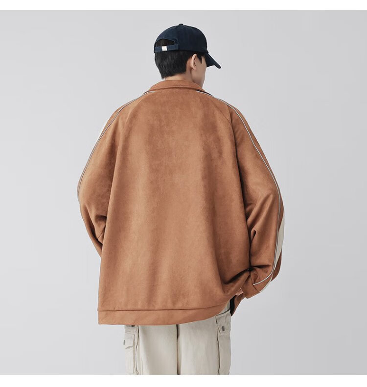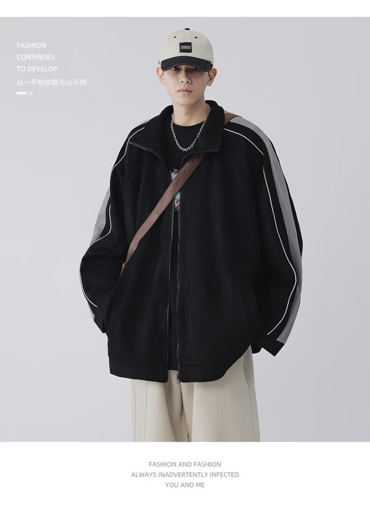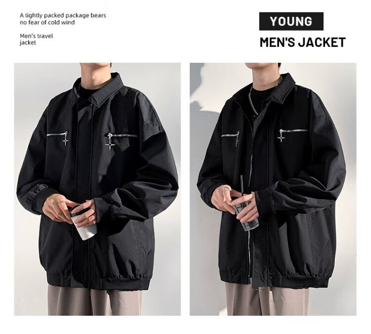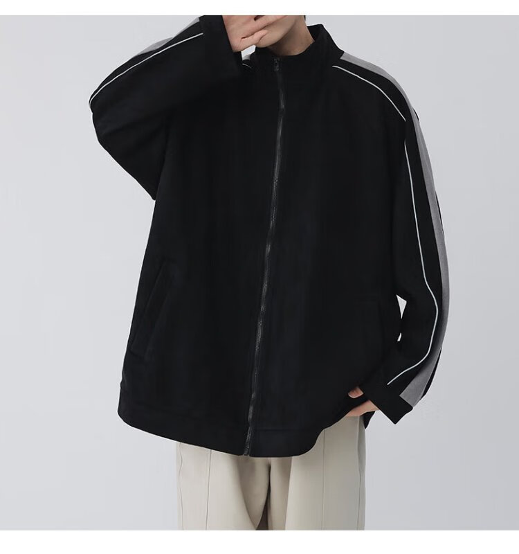 Dingfengbaoluo American high street jacket men's autumn and winter trendy brand loose lapel jacket casual top YM9952 black L