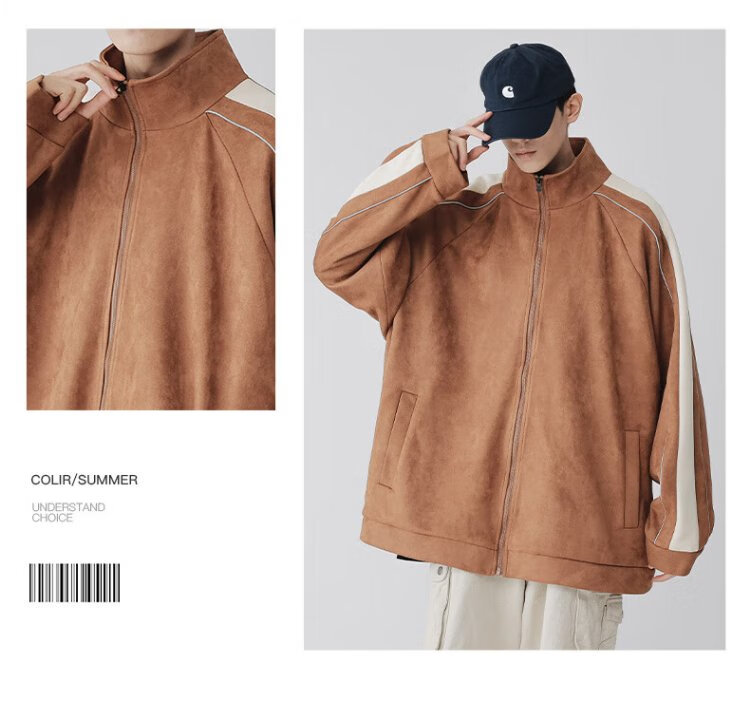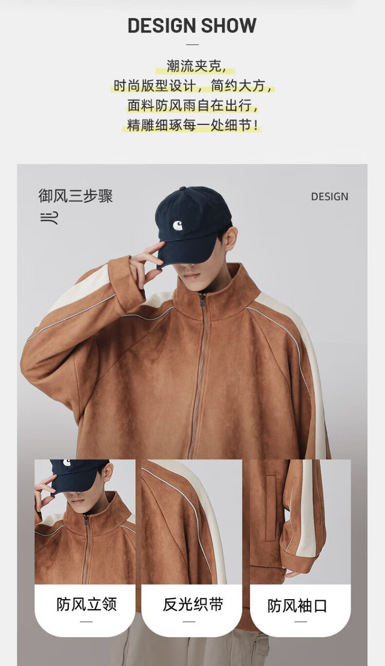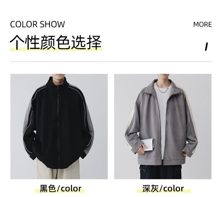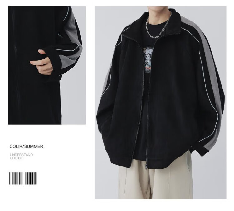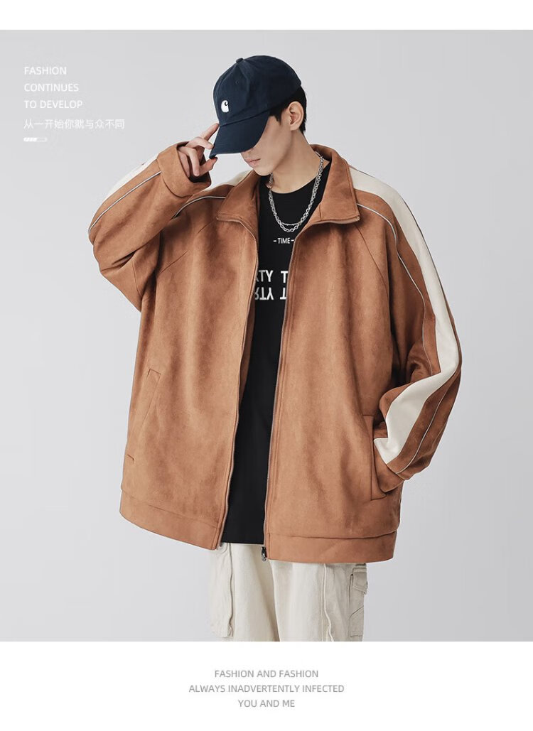 Dingfengbaoluo American high street jacket men's autumn and winter trendy brand loose lapel jacket casual top YM9952 black L