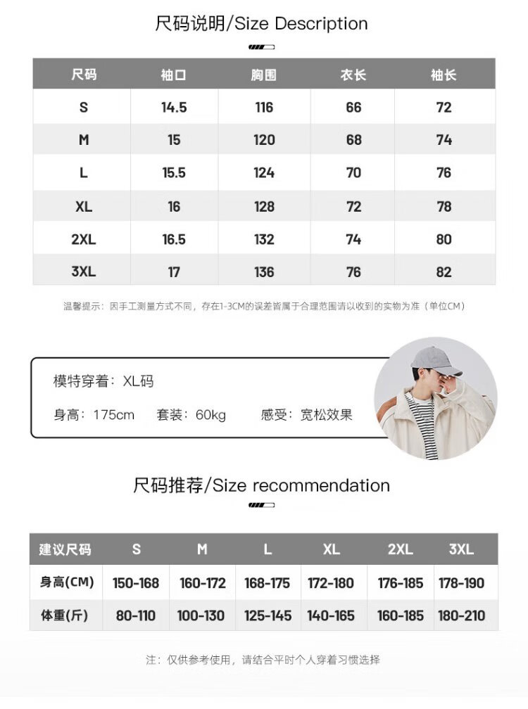 China (cm) 165 / 88-90 170 / 96-98 175 / 108-110 180 / 118-122 185 / 126-130