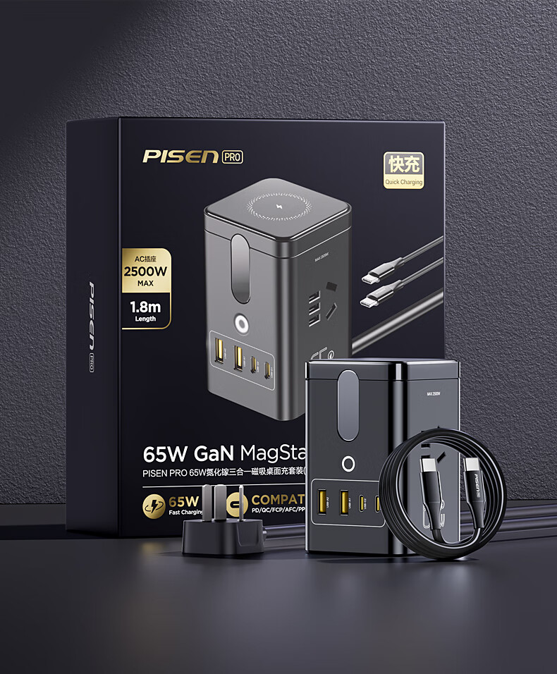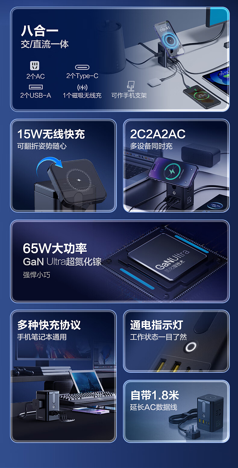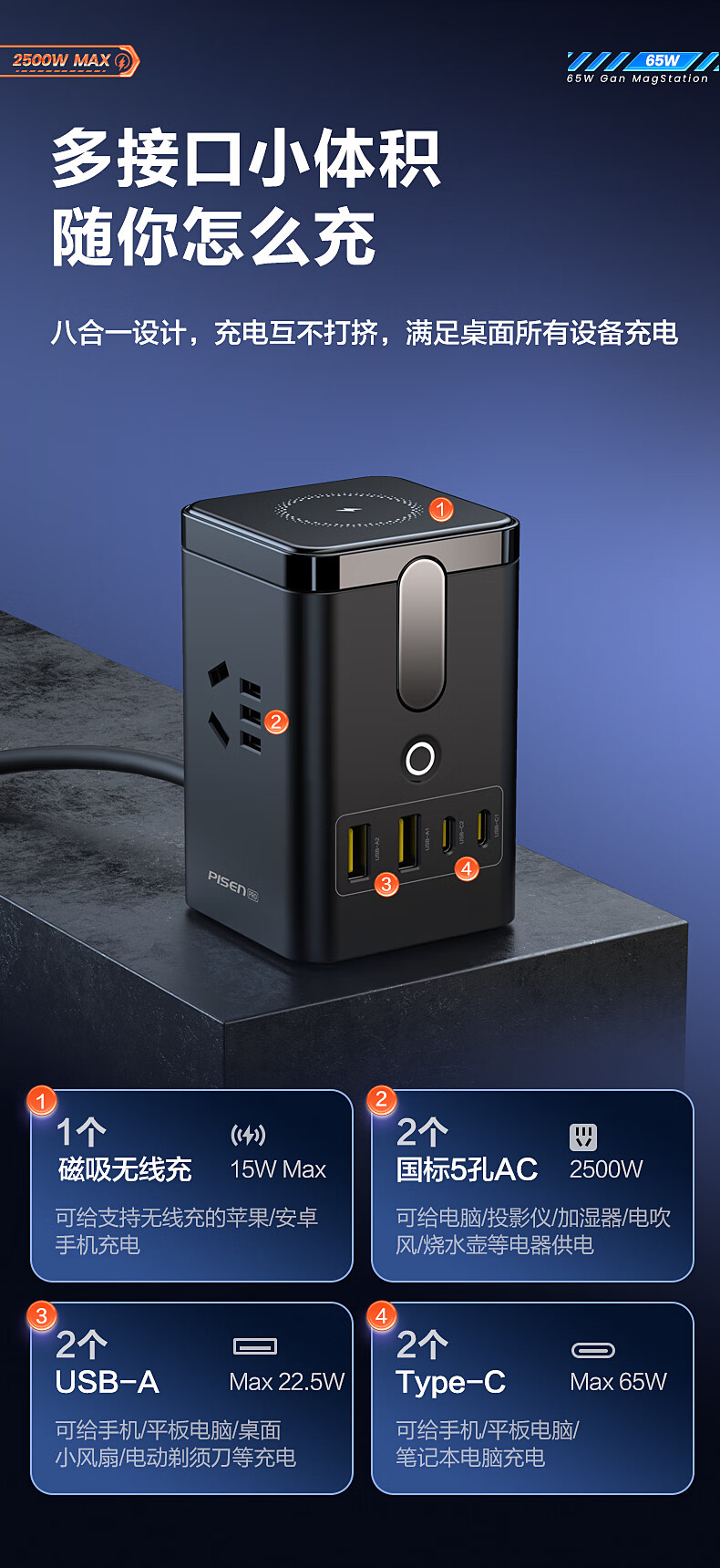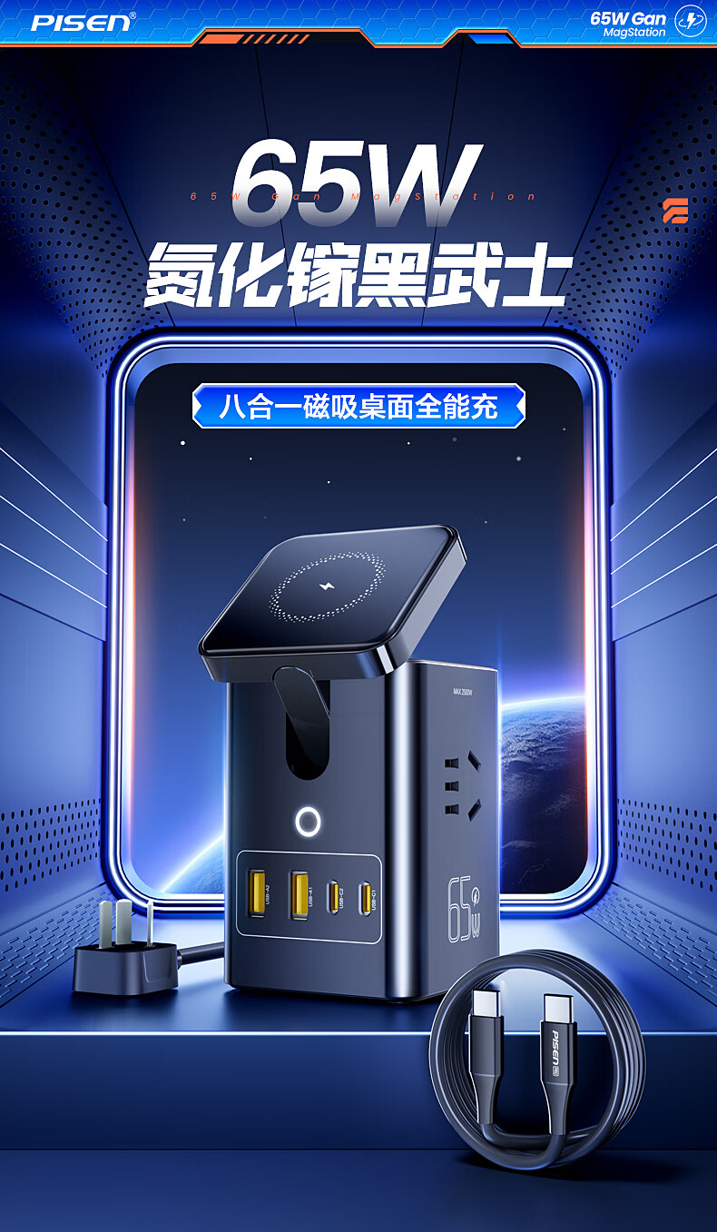 Pinsheng EVA co-marqué Asuka prise 65 W prise en nitrure de gallium station de chargeur de bureau multi-fonction extension prise bande 2C2A + 2 prise universelle téléphone portable ordinateur appareils ménagers