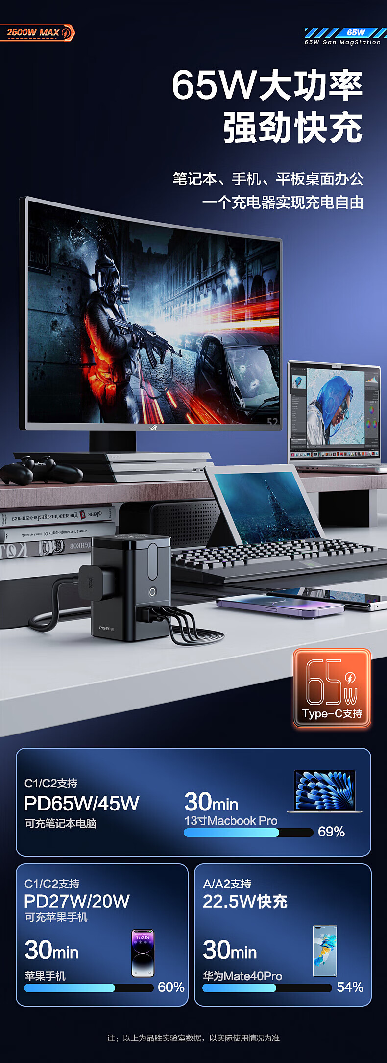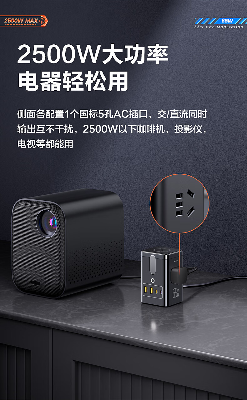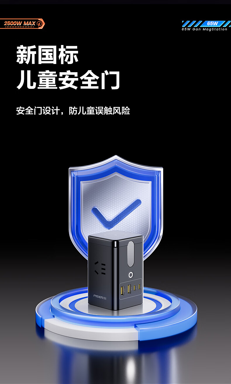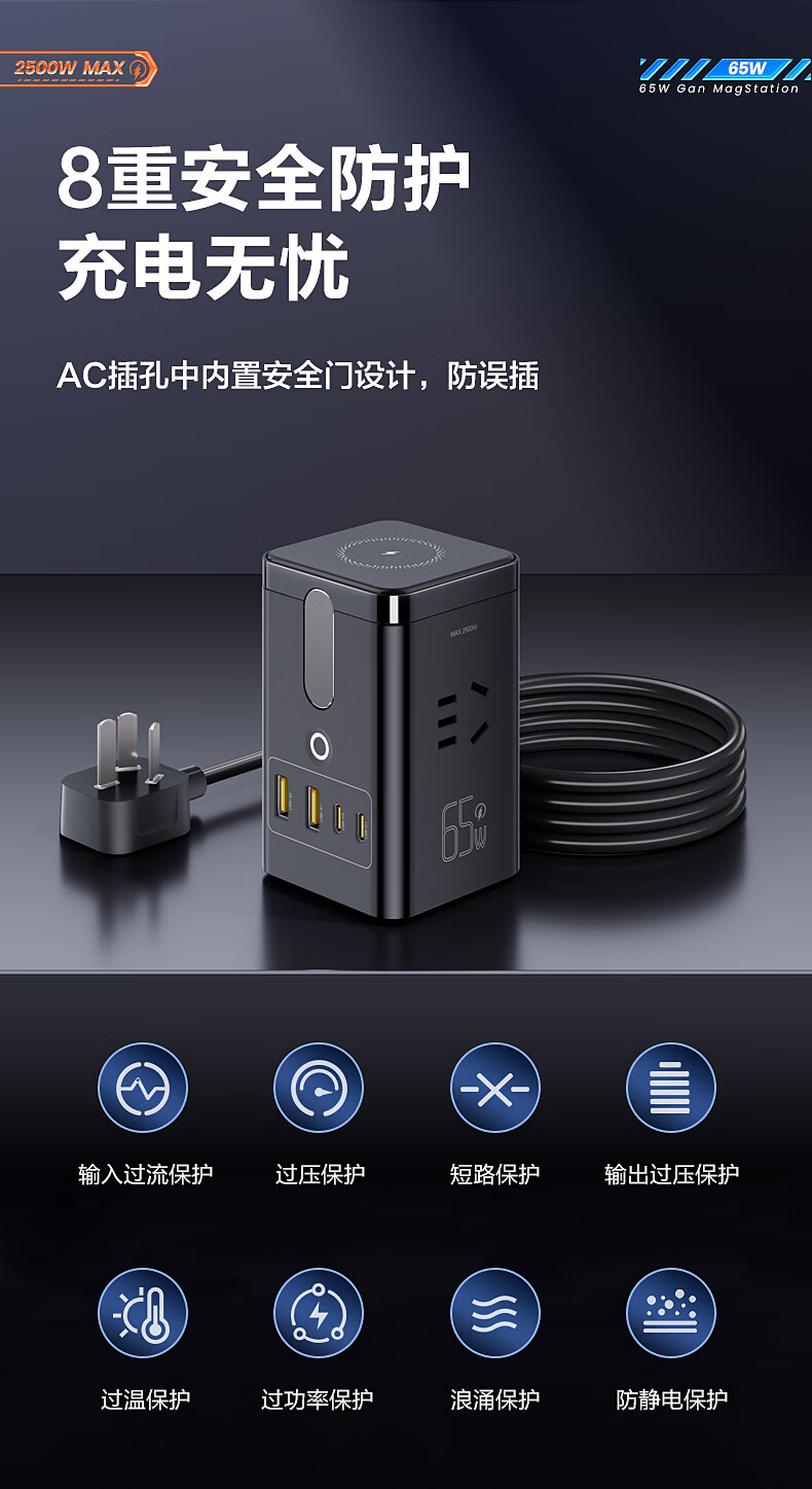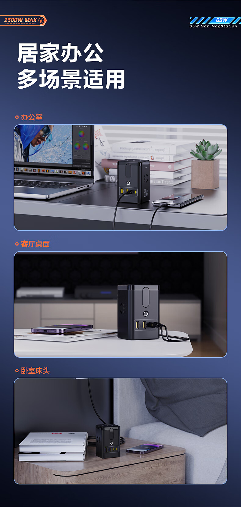 Pinsheng EVA co-marqué Asuka prise 65 W prise en nitrure de gallium station de chargeur de bureau multi-fonction extension prise bande 2C2A + 2 prise universelle téléphone portable ordinateur appareils ménagers