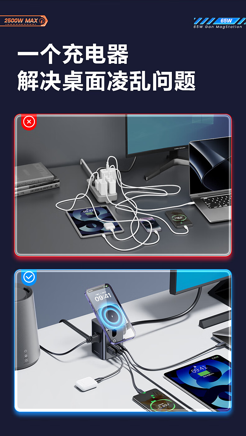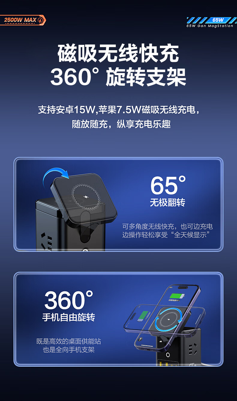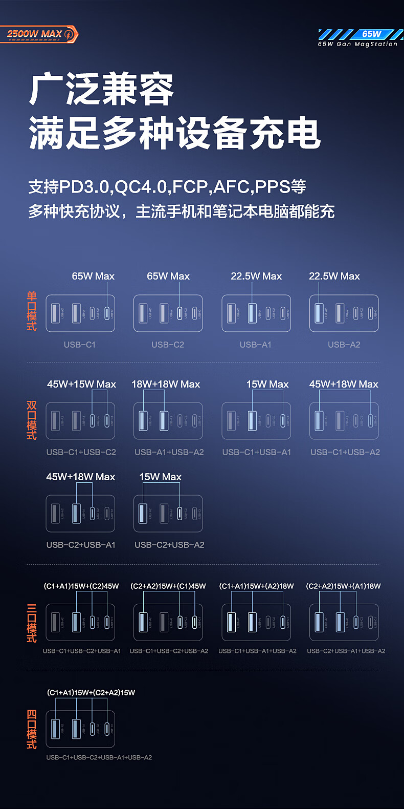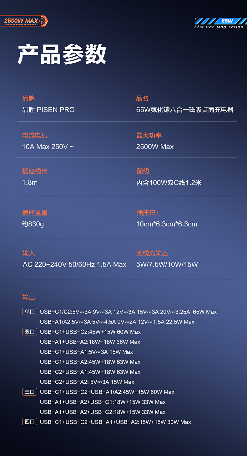 Pinsheng EVA co-marqué Asuka prise 65 W prise en nitrure de gallium station de chargeur de bureau multi-fonction extension prise bande 2C2A + 2 prise universelle téléphone portable ordinateur appareils ménagers