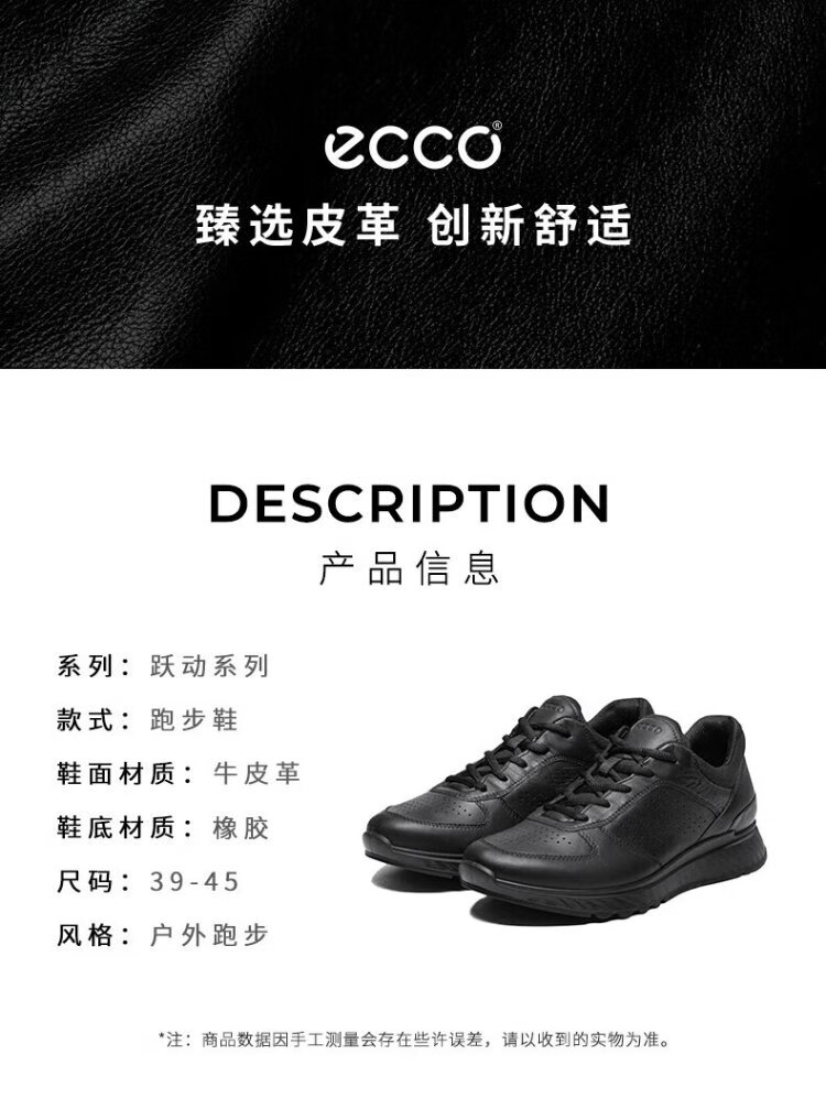 ECCO Aibu sports shoes men's four-season travel breathable cushioning outdoor shoes running shoes Yuedong 835314 42
