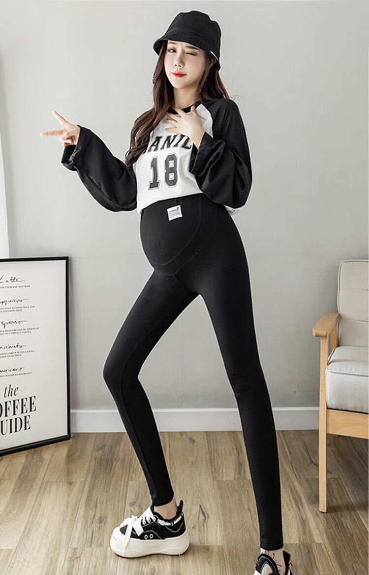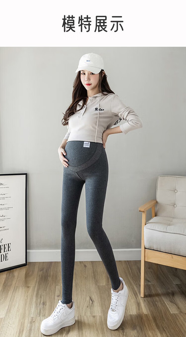 Aiboshi Maternity Leggings Autumn and Winter Plus Velvet Thickened Pregnancy High Waist Belly Support Pants for Inner and Outer Wear Maternity Clothes Gray XL M404