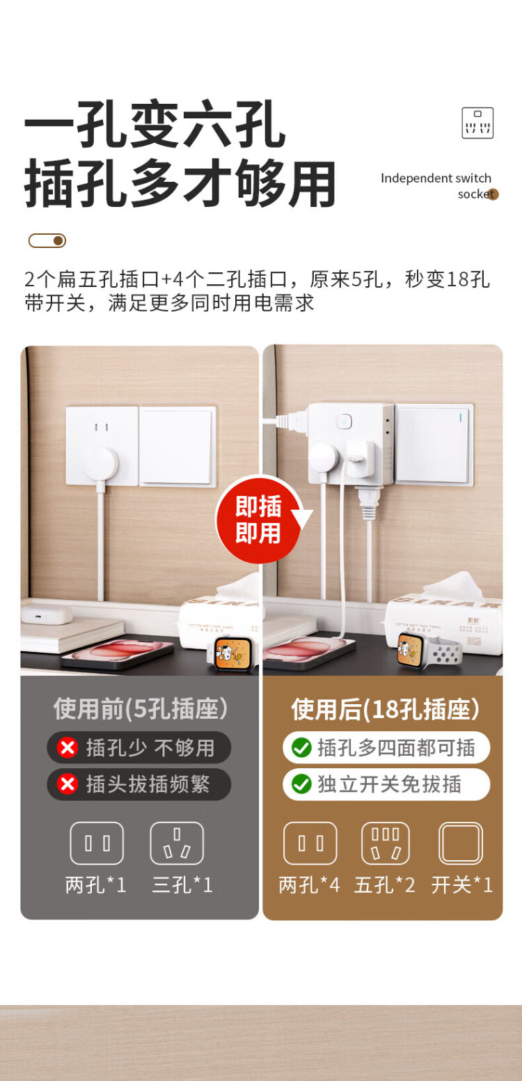 International Electrician Type 86 Wall Conversion Plug/Power Converter/Conversion Socket Suitable for Home Bedroom and Kitchen One-to-Fourteen-hole Socket Sub-Control Switch Gray