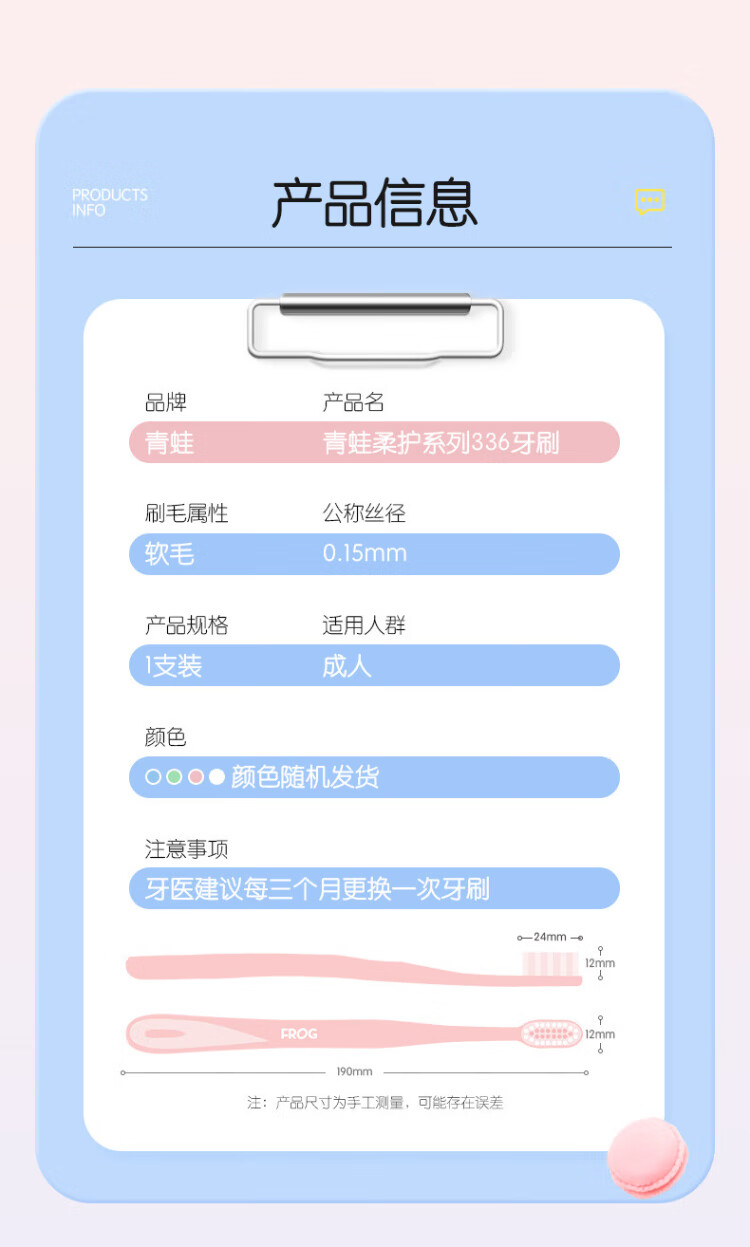 FROG fine soft bristle toothbrush 336 series small brush head soft gum protection adult portable toothbrush 4 pieces